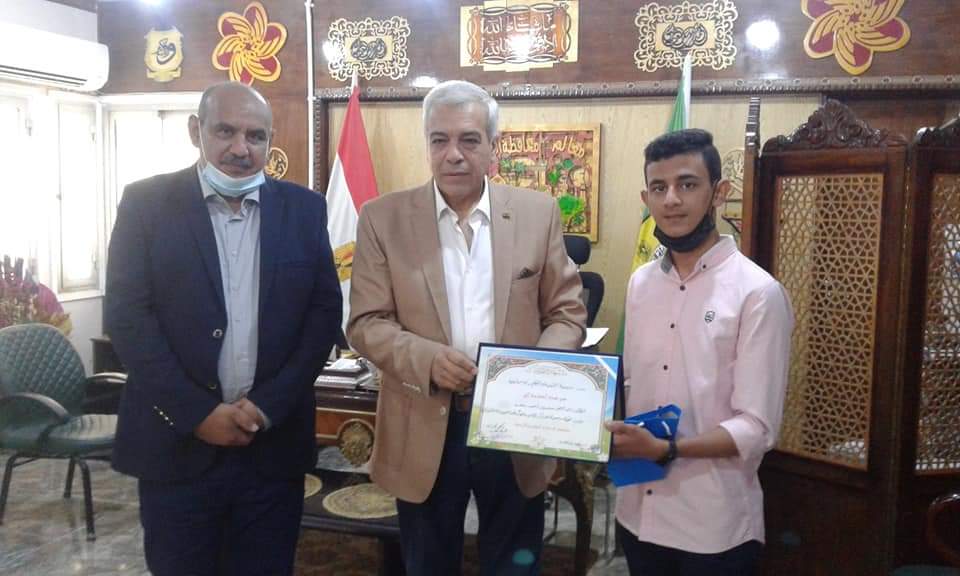 و أعرب عبد الرحمن عن سعادته البالغة بلقائه مع المحافظ وتكريمه له مؤكدا انه يعتبر هذا التكريم دافعا له لمزيد من التقدم وحافزا للوصول لحلمه بالحصول علي جائزة نوبل يوما ما.