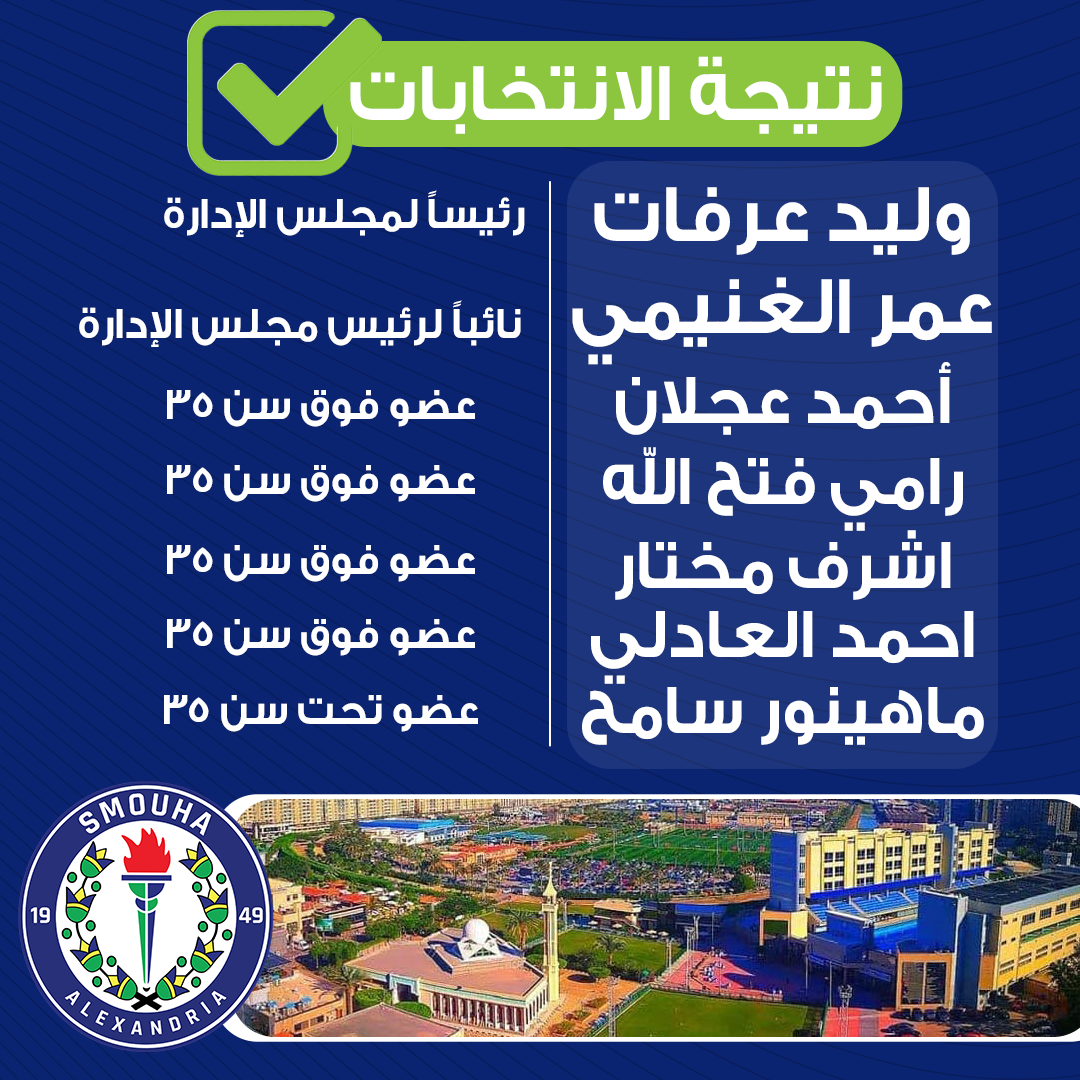 وكانت نتائج فرز أصوات الناخبين التي أعلنتها اللجنة القضائية المشرِفة على انتخابات مجلس إدارة نادي سموحة "الرياضي – الاجتماعي"، أظهرت أمس الجمعة، فوز المحاسب وليد عرفات بمنصب رئيس النادي، وحصد عمر خمس الغنيمي مقعد النائب، وذلك في الانتخابات التي جرت رغم صدور حكم قضائي من لجنة التسوية والتحكيم الرياضي بتأجيلها لحين الفصل في خطأ الإجراءات، وموقف المستبعدين.