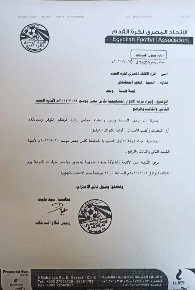 وكان الاتحاد المصري قرر تحديد مواعيد المباريات المتبقية من بطولة كأس مصر لموسم 20-2021 على أن تقام قبل انطلاق دور الـ 32 للبطولة في نسختها الجديدة.