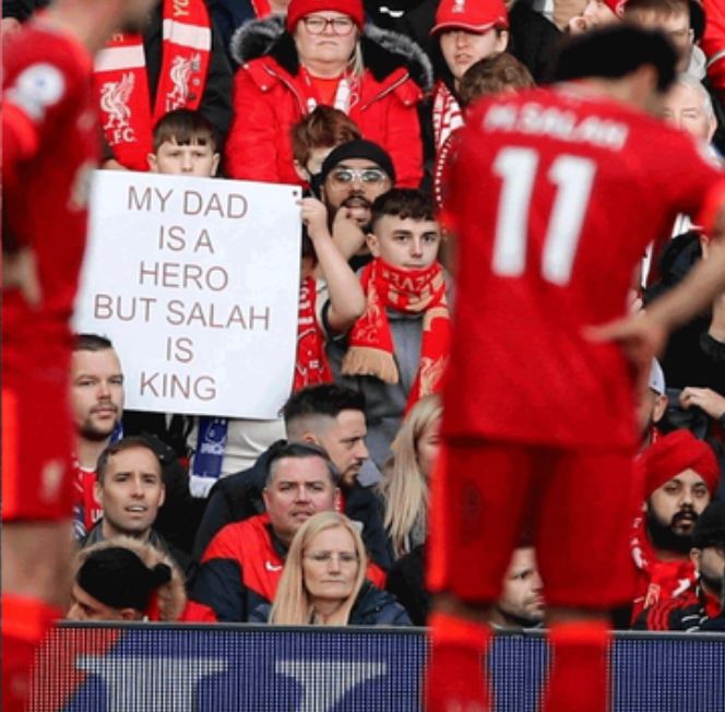 طفل يوجه رسالة مثيرة لـ محمد صلاح من مدرجات ملعب أنفيلد | صورة