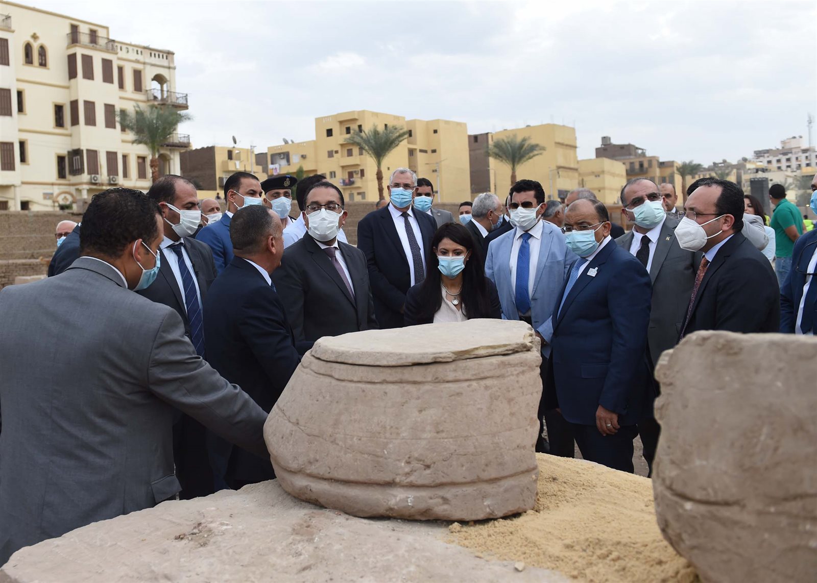 توجه الدكتور مصطفى مدبولي، رئيس مجلس الوزراء، إلى منطقة أعمال الحفائر، الواقعة بطريق الكباش، لتفقد الأعمال الجاري تنفيذها بها، والتعرف على أحدث الاكتشافات بها، وذلك عقب حضوره الاحتفال بيوم المدن العالمي، المقام بمدينة الأقصر، ورافقه عدد من الوزراء والمحافظين، والدكتور مصطفى وزيري، الأمين العام للمجلس الأعلى للآثار.