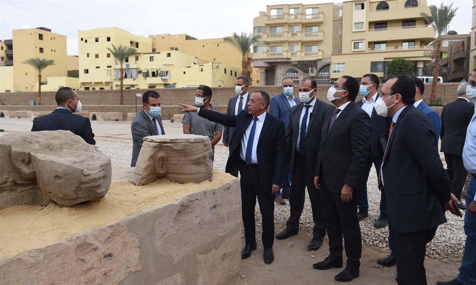 وخلال جولة رئيس الوزراء بمنطقة الحفائر، أشار الدكتور مصطفى وزيري إلى المنطقة التي تم العثور بها على رؤوس كباش جديدة، وآخرها رأس تمثال تم اكتشافها صباح اليوم، وهذه الرؤوس الخمسة بالإضافة إلى أبدان التماثيل نفسها تم العثور عليها في هذا الموقع، قرب الكنيسة، وجار إعادة تجميعها وترميمها مرة أخرى، بالإضافة إلى تمثال كامل تم العثور عليه وجار ترميمه وتركيبه بالكامل، مؤكدا أن هذه الرؤوس تدعم مشروع إحياء طريق الكباش الفرعوني المنتظر افتتاحه قريبا.