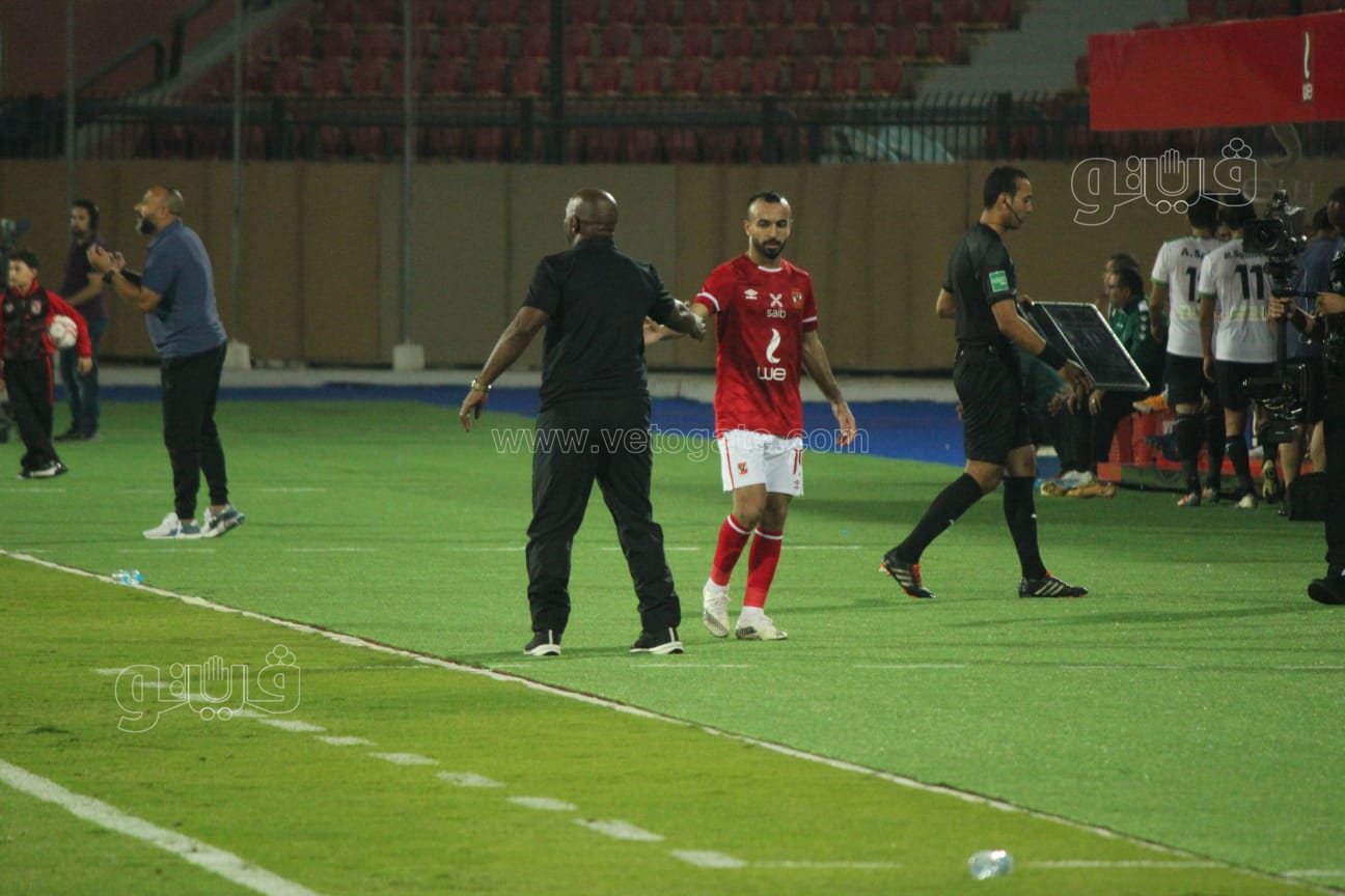 وبدأ الأهلي الشوط الثاني بضغط مكثف وسيطرة على الكرة، وتنوعت الكرات العرضية من علي معلول لويس ميكيسوني، قبل أن يقرر بيتسو موسيماني المدير الفني للأهلي إجراء تبديل هجومي بإشراك محمد شريف في مركز رأس الحربة، بدلا من محمد هاني الظهير الأيمن، مع تغيير مركز أكرم توفيق من وسط الملعب إلى الجهة اليمنى وتصبح طريقة لعب الأحمر 4 / 2 / 3 / 1، وهو ما منح الأهلي أفضلية واستحواذا أكثر حتى نجح محمد شريف في إدراك هدف التقدم.