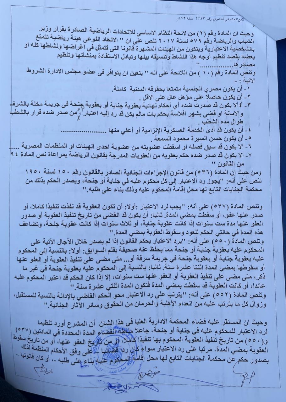 أصدرت محكمة القضاء الإداري حكمًا اليوم يقضي بإدراج اسم الدكتور وليد عطا في كشوف المرشحين لانتخابات الاتحاد المصري لألعاب القوى والتي من المقرر إقامتها يوم الجمعة القادم 5 نوفمبر 2021.
