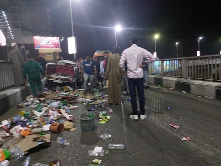 أصيب مواطن وطفلان في انقلاب تروسيكل لجمع القمامة أعلى الكوبري العلوي بمدينة قنا، بعد اصطدامه بالرصيف.