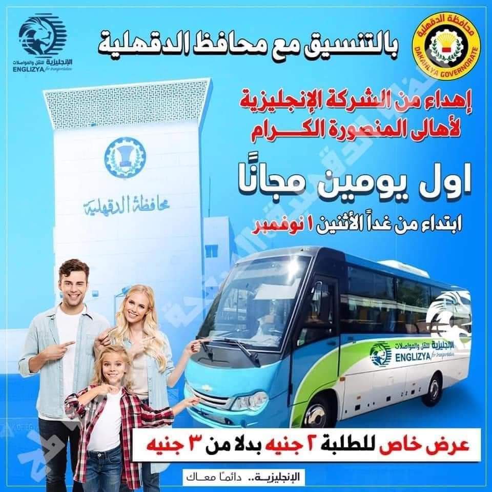 انطلاق مشروع النقل الجماعي في الدقهلية بالمجان لمدة يومين.. وتخفيض الأجرة للطلاب طوال العام