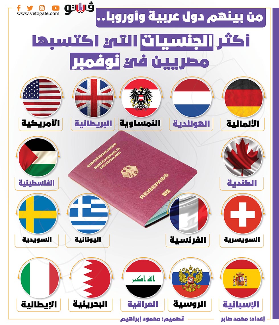 من بينهم دول عربية وأوروبا.. أكثر الجنسيات التي اكتسبها مصريين في نوفمبر | إنفوجراف