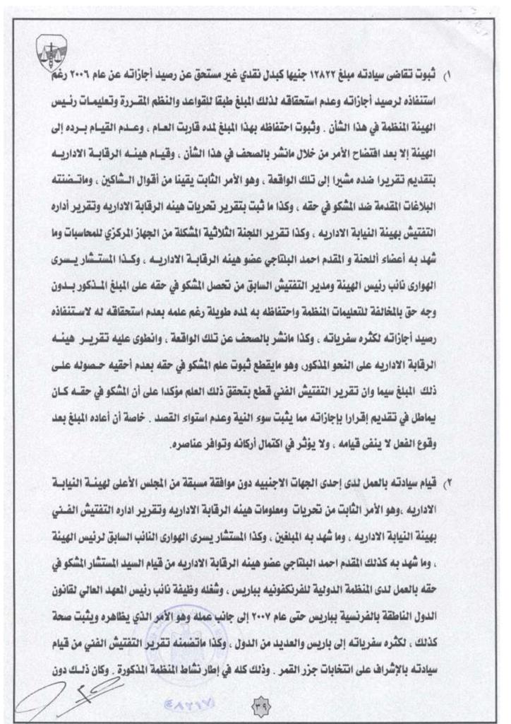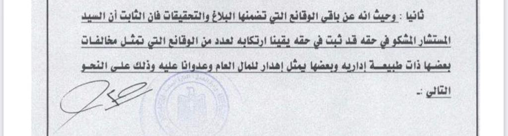 إذ أن الواقعة التي ارتكبها «تيمور فوزي مصطفى كامل» تُشكِل في حقه جريمة جنائية قوامها الاستيلاء على المال العام، ويتعين عليه رد ما صُرِف له من لجان التوفيق فى بعض المنازعات وصندوق الخدمات الصحية والاجتماعية لأعضاء الهيئات القضائية بوزارة العدل دون وجه حق، حرصًا على سمعة أعضاء الهيئات والجهات القضائية المحترمين، الذين لا يأكلون إلا حلالًا، ولا يقبلون على ذويهم أموال الدولة التي كفلت لهم قسطًا لائقًا من الرعاية والخدمات بما يصون كرامتهم، التي صانوها وهم في ميدان العمل، وبعد أن اكتمل عطاؤهم.