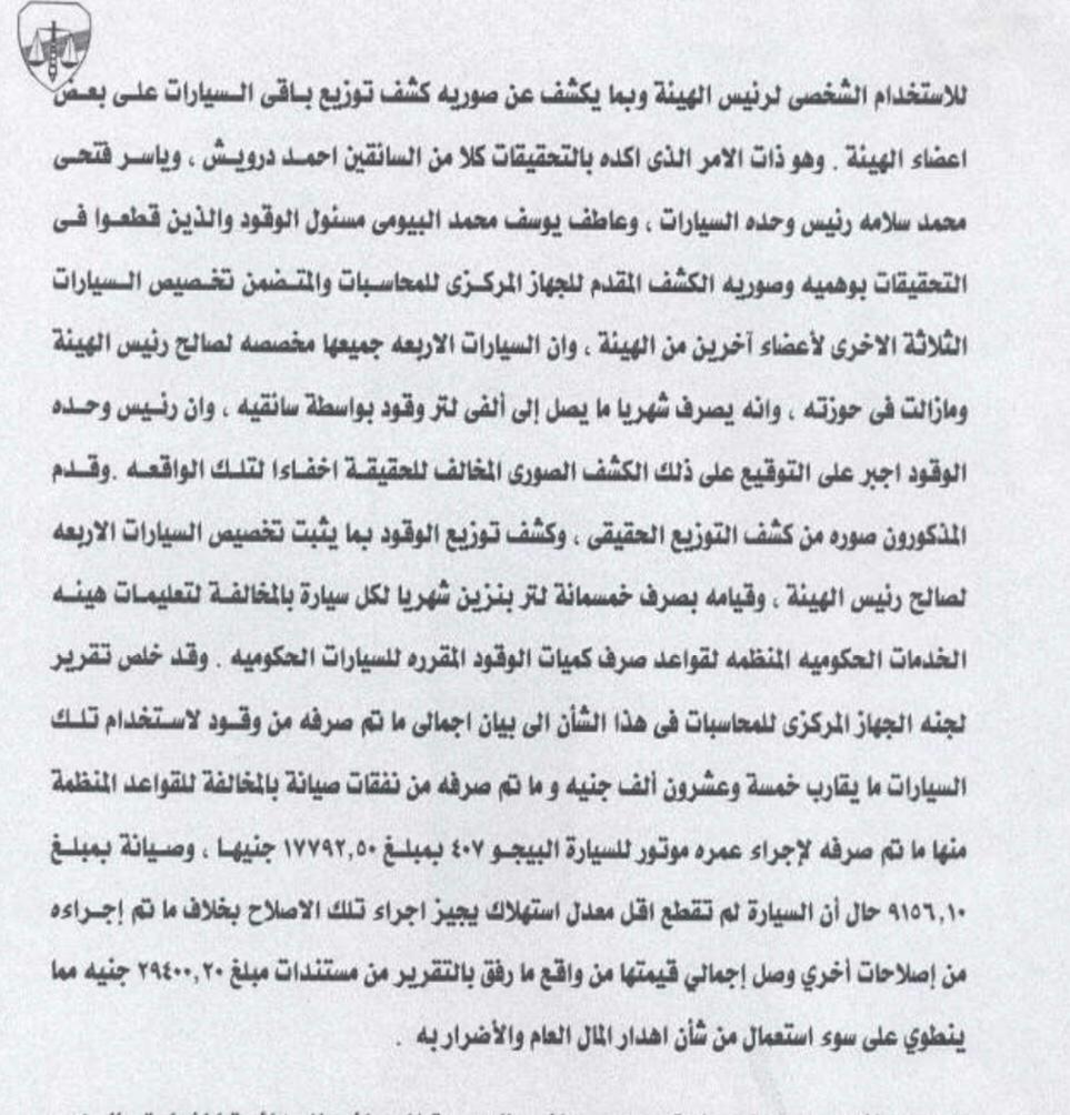 وليس غريبًا على رئيس الهيئة القضائية الأسبق ما ثبت في حقه بالوثائق والمستندات والتحقيقات حيث كان يتنفس «المخالفات» هو ومن سهلوا له ارتكاب الجرائم المالية والمخالفات القانونية والإدارية الجسيمة، وكما سماها قاضي التحقيق «عدوانًا على المال العام».. وأولى كوارث المستشار «تيمور» هي فاجعة فقد ملف التحقيق معه ومذكرة تصرف القاضي الجليل المستشار محسن مبروك، رئيس الاستئناف في البلاغ رقم 3497 لسنة 2011 بلاغات النائب العام، والتي انتهت إلى ثبوت مخالفات المذكور وإحالته إلى مجلس التأديب المختص وفقًا للقانون.