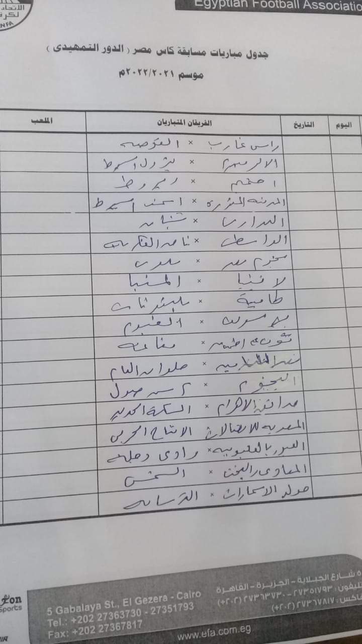 أسفرت قرعة الأدوار التمهيدية لبطولة كأس مصر لأندية الأقسام الثاني والثالث والرابع، والتي أجريت منذ قليل بمقر اتحاد الكرة عن مواجهات كلا من: