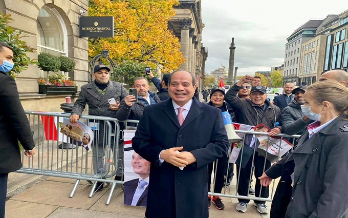 نشر السفير بسام راضي، المتحدث باسم رئاسة الجمهورية عبر صفحته الرسمية على فيس بوك، صورا للرئيس عبدالفتاح السيسي من أمام مقر إقامته في اسكتلندا، حيث وقف لالتقاط الصور وتبادل التحية، مع أفراد الجالية المصرية المقيمين في اسكتلندا.