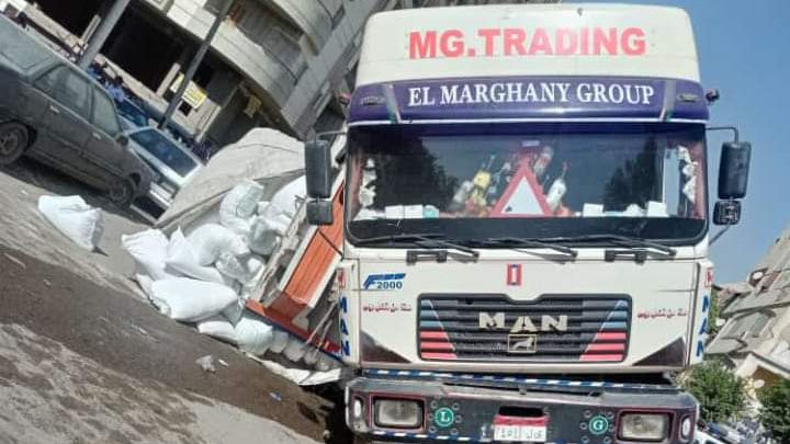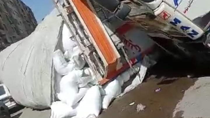 انقلاب سيارة نقل محملة بالسكر في حلوان| صور