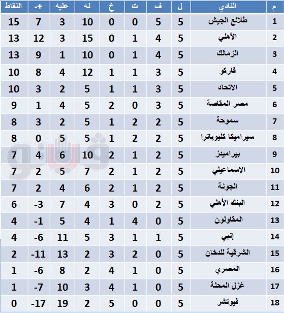 جدول ترتيب دوري الجمهورية للشباب 2001 بعد الجولة الخامسة