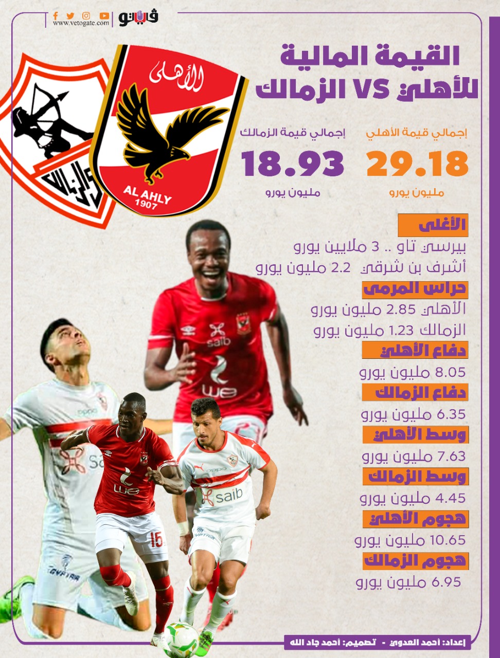 القيمة المالية للأهلي VS الزمالك | إنفوجراف الخميس 04/نوفمبر/2021 - 11:29 ص 11/4/2021 11:29:19 AM الأهلي والزمالك محمد ابو على شارك طباعة 18 حجم الخط شارك طباعة الأهلى والزمالك أخبار الأهلي رياضة أخر أخبار الزمالك بيرسي تاو أشرف بن شرق