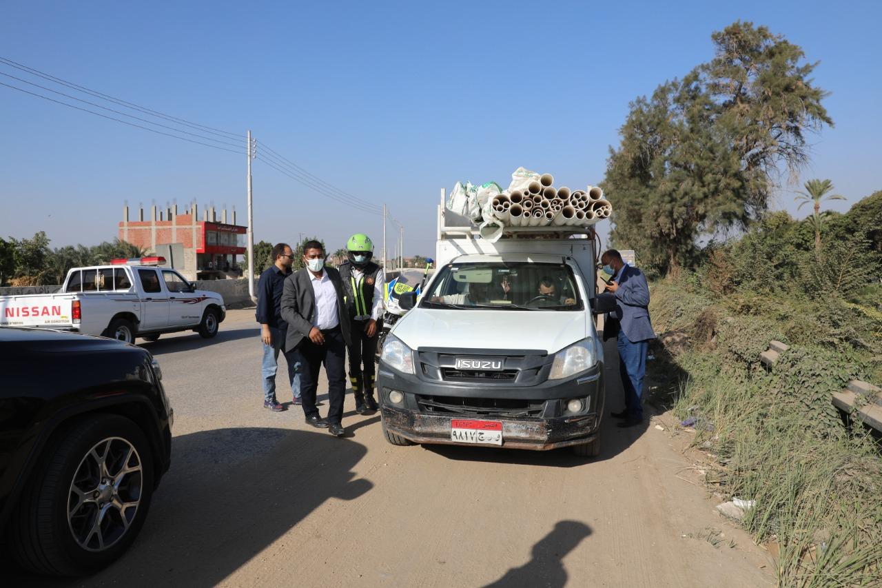 تسير عكس الاتجاه.. سيارة «ربع نقل» تُوقف موكب محافظ بني سويف | صور