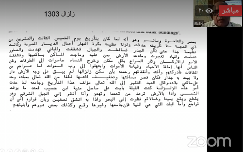 وأوضح أن كتاب" ايمانويلا" رصد تعرض مصر للتسونامى بدءا من القرن الـ١١ وحتى القرن ال١٥، واشار إلى تعرض الاسكندرية للتسونامى عام 1303، ووفقا لشهادة أحد الأهالى الذى تواجد فى مخطوطة بالكتاب فقد وصف ان البحر انفلق نصفين وشاهد قاع البحر.