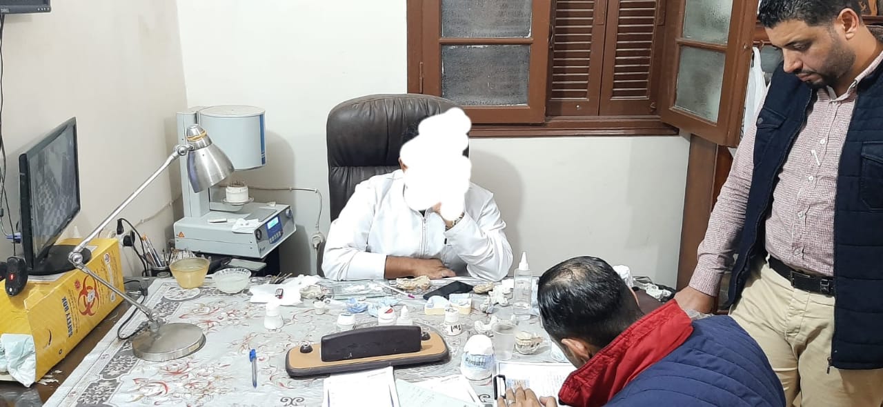 تمكنت مديرية الصحة بالغربية إدارة العلاج من ضبط "و. أ" انتحل صفة طبيب أسنان بمدينة المحلة الكبرى، يعمل موظفًا بأحد مكاتب الصحة يقوم بالكشف على المرضى بعيادة أسنان مجهزة، ويوجد أيضًا بالعيادة غرفة ملحقة بها معمل اسنان.