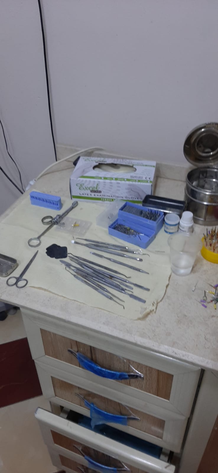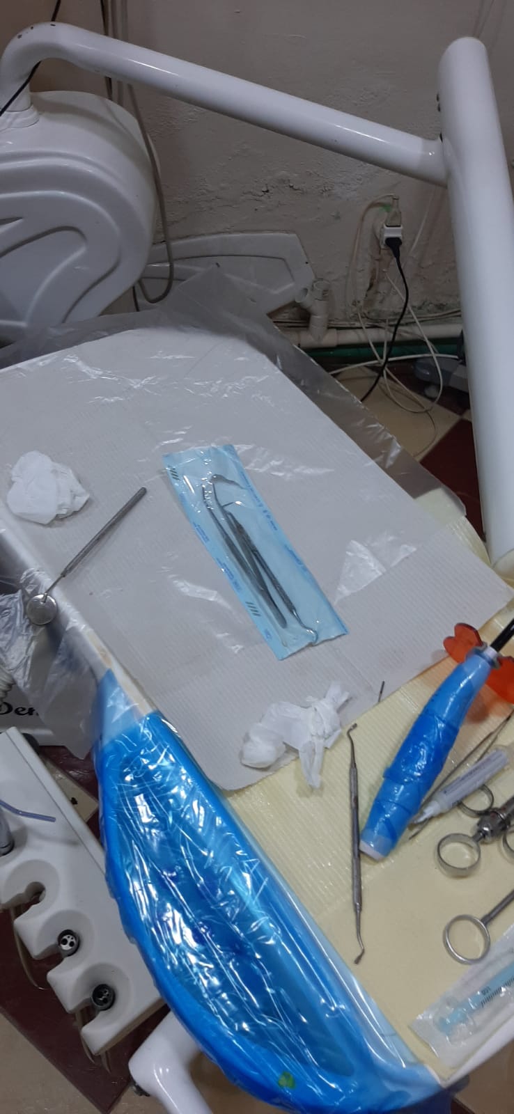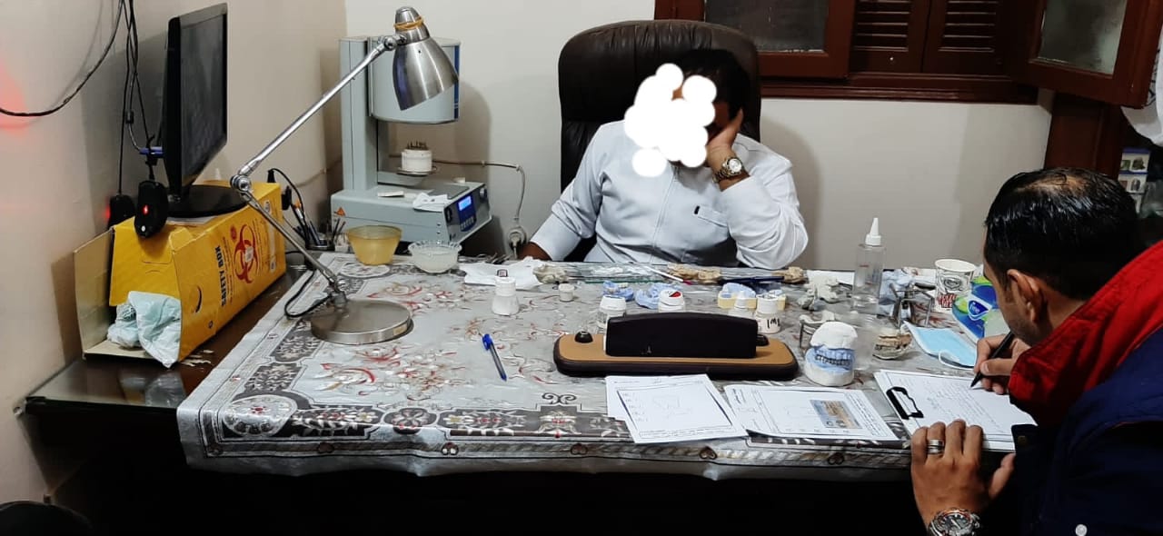 وأقر المرضى الموجودون بالعيادة بأنه يقوم بالكشف الطبي عليهم وعمل إجراءات طبية مثل الحشو والخلع والتركيبات.