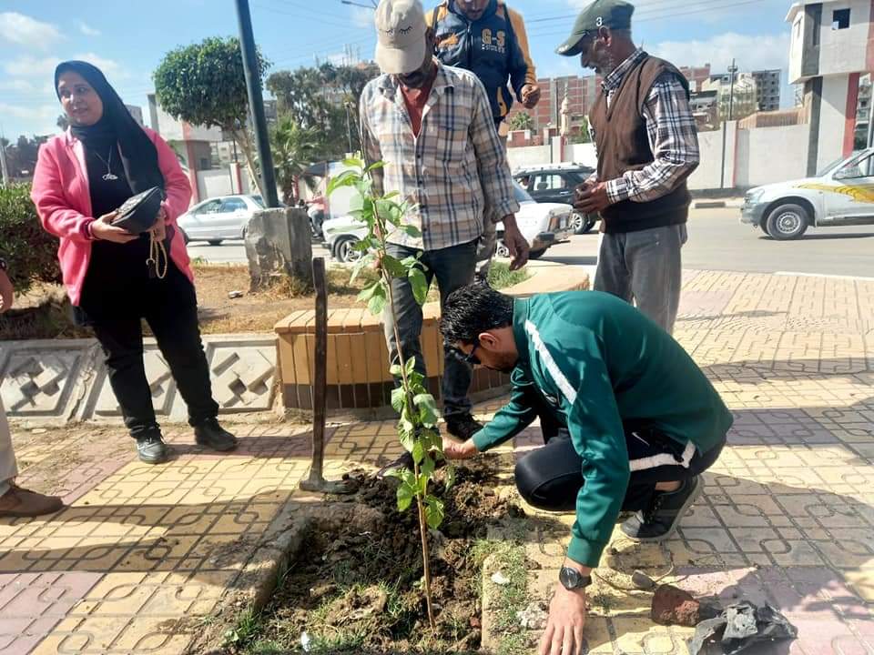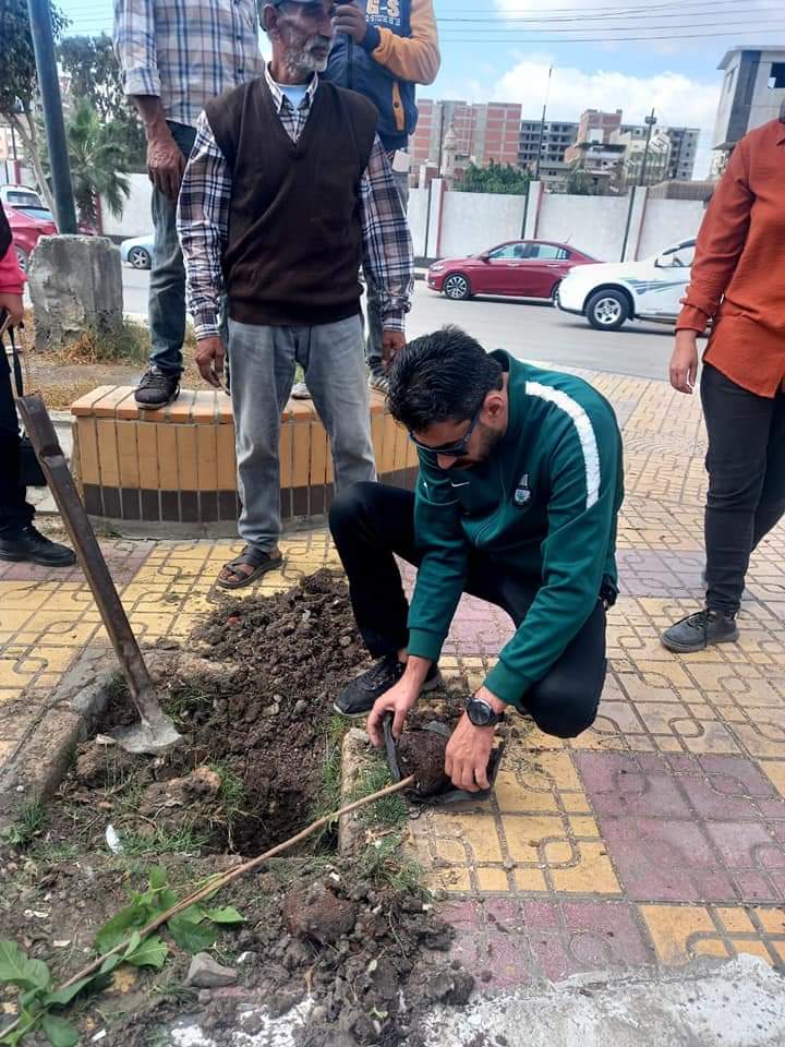 وأشار الي ان التنفيذ بدأ بحي غرب المنصورة ففي اليوم الأول تم زراعة 100 شجرة مثمرة، بشارع بورسعيد