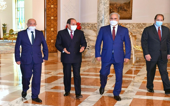 - استقبل الرئيس السيسي مؤخرا الماضية كلًا عبد الحميد الدبيبة رئيس حكومة الوحدة الوطنية الليبية وعقيلة صالح رئيس مجلس النواب الليبي، والمشير خليفة حفتر القائد العام للقوات المسلحة الليبية، وذلك بحضور عباس كامل رئيس المخابرات العامة.