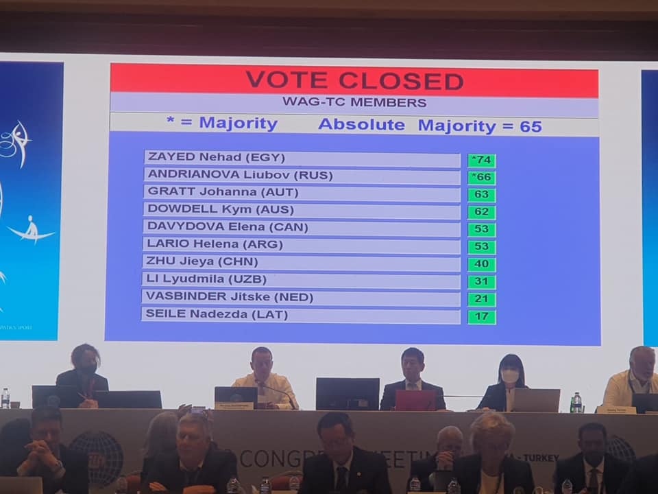فازت الدكتورة نهاد زايد بمنصب نائب أول رئيس اللجنة الفنية في الاتحاد الدولي للجمباز الفني آنسات فى الانتخابات التي أقيمت في مدينة انطاليا بتركيا اليوم بعد ان حصلت على أعلى الاصوات.