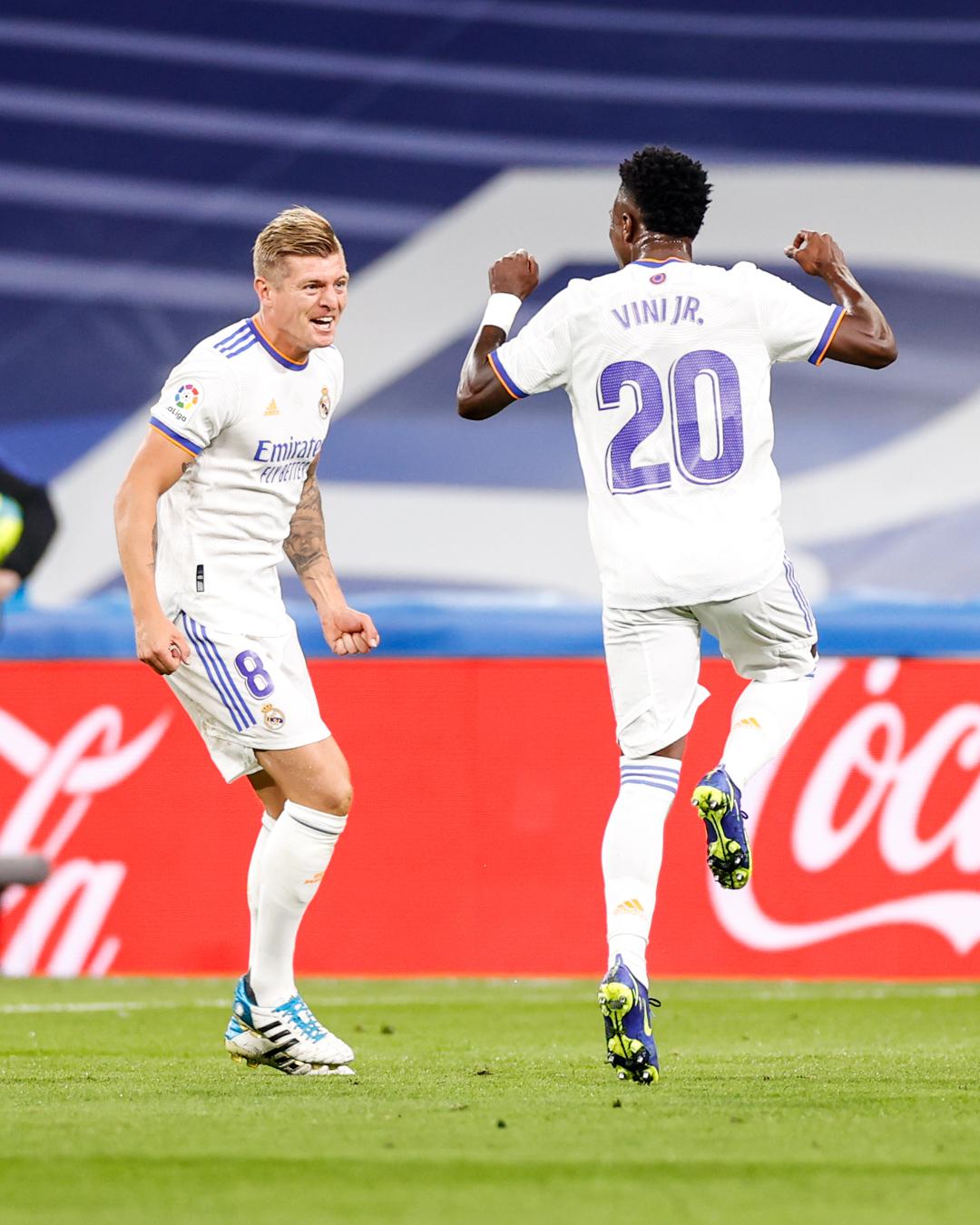 وسجل هدفا ريال مدريد كل من توني كروس في الدقيقة 15، وكريم بنزيما في الدقيقة 39.
