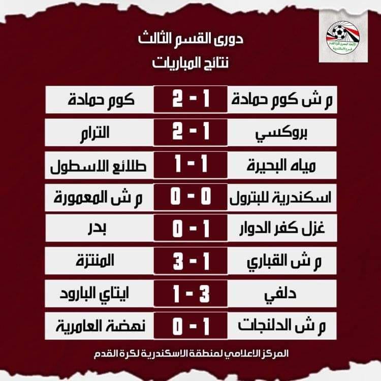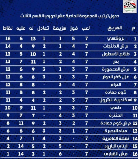 جدول ترتيب مجموعة الإسكندرية في دوري القسم الثالث بعد الجولة السابعة