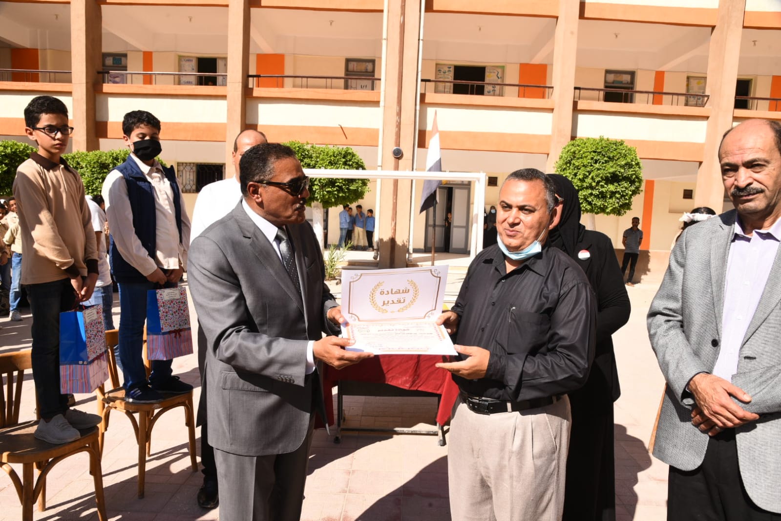 محافظ مطروح يكرم معلمًا ومديرة مدرسة ابتكرا كروت أخلاق للطلاب