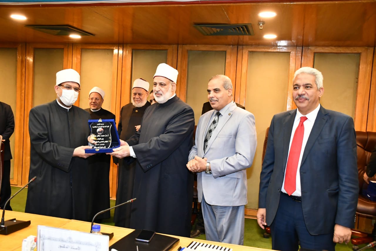إهداء درع كلية الدعوة لوزير الأوقاف تقديرًا لجهوده في خدمة الإسلام