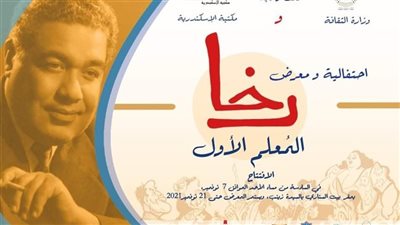 احتفالية ومعرض "رخا.. المُعلم الأول"، ينظمه مشروع ذاكرة الكاريكاتير والإدارة المركزية للشئون الأدبية والمسابقات التابعة للمجلس الأعلى للثقافة، بالتعاون مع مكتبة الإسكندرية.