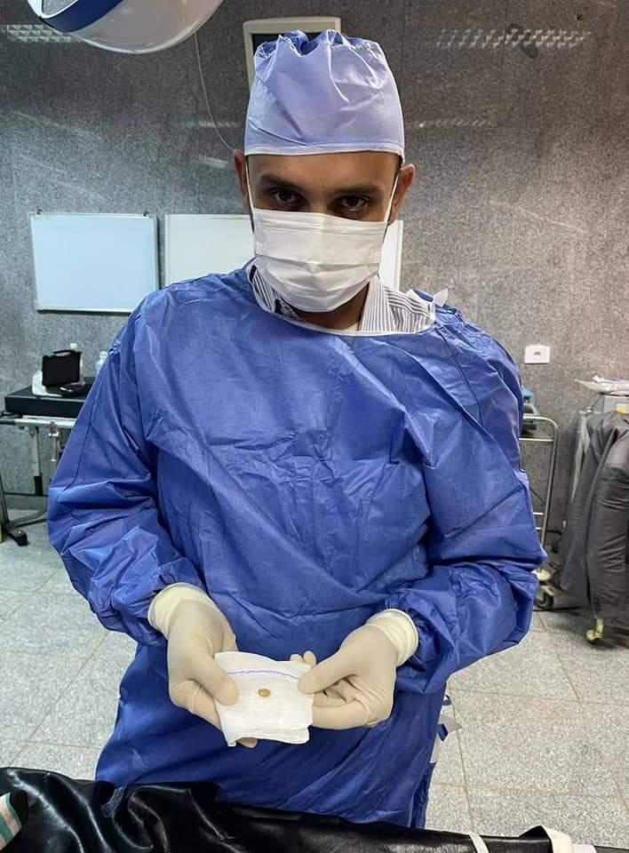 وأشار الدكتور محمد الجزار أستاذ جراحة القلب والصدر استشاري مناظير الشعب الهوائية والتجويف الصدري بطب بنها إلى أنه منذ شهر والطفل يتردد على أطباء الأطفال لمحاولة إنقاذه من الالتهاب الشعبي المزمن والبلغم المستمر، ولكن دون جدوى حتى انتاب الأطباء الشك في وجود جسم غريب بالأشعة المقطعية، حيث تم إدخاله للعمليات على الفور، وتم استخراج اللبة في عملية سريعة استغرقت نصف ساعة فقط.