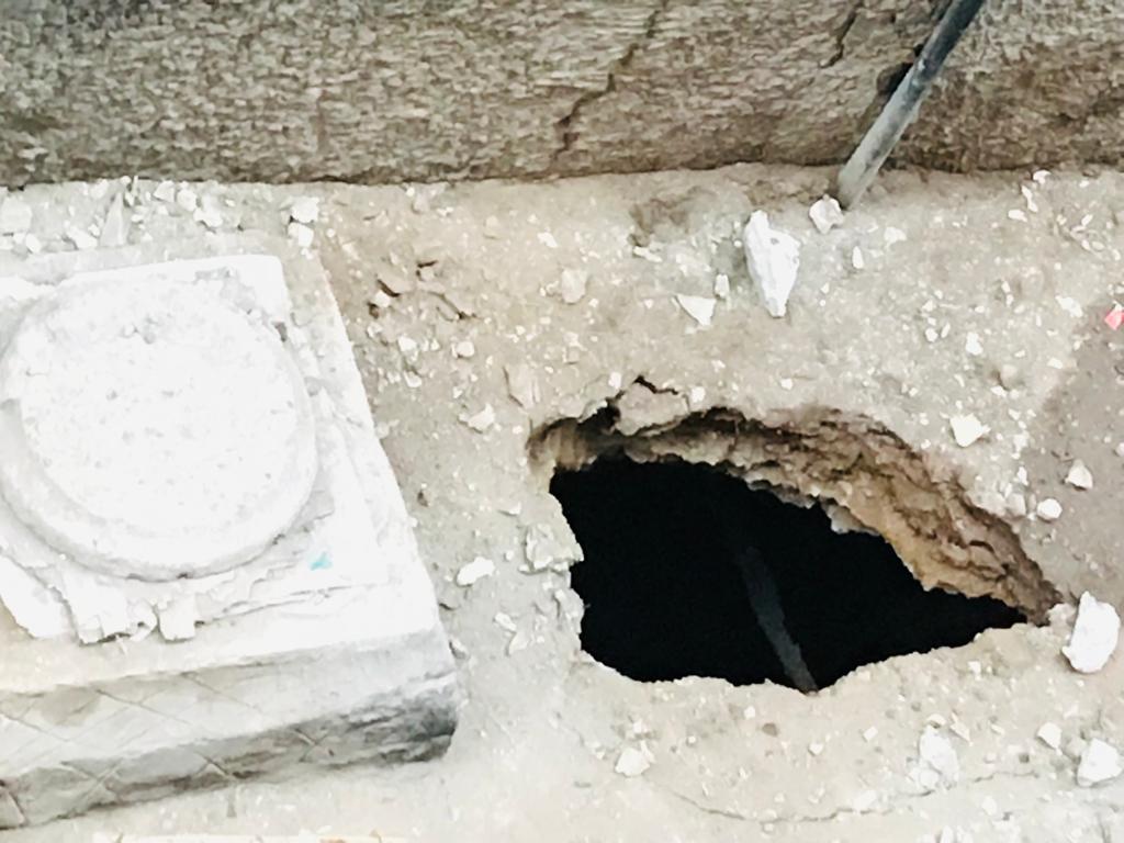 وانتقلت لجنة المنشآت الآيلة للسقوط التابعة لحي أول، ولجنة تابعة لشركة مياه الشرب والصرف الصحي، إلى موقع البلاغ لمعاينة الهبوط الأرضي حتى يتم إصلاحه.