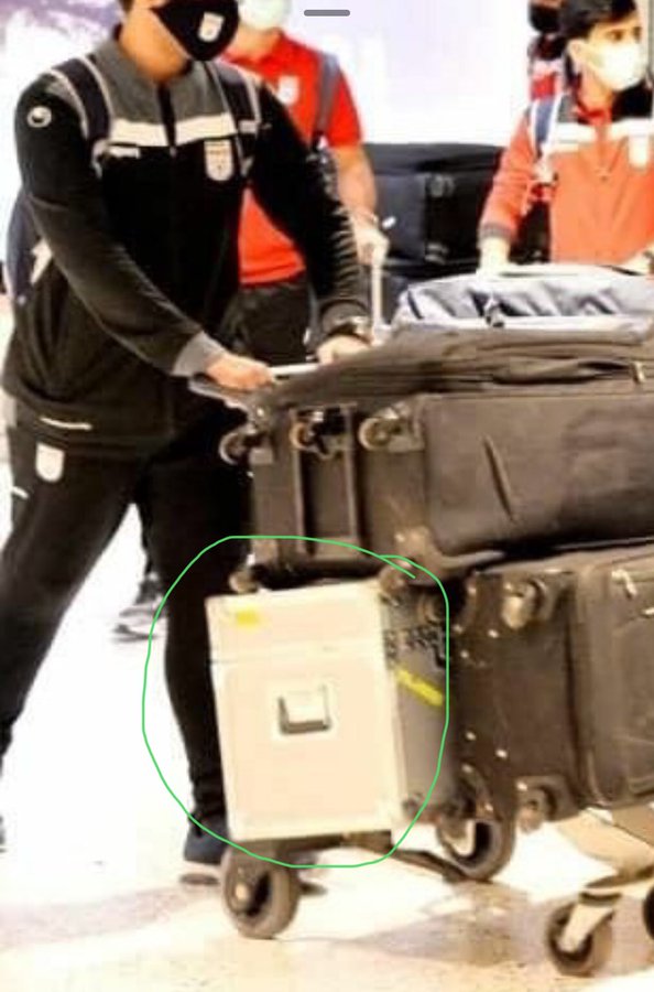 وأشار أحد المدونين اللبنانيين، إلى حقيبة على شكل صندوق برفقة أحد أفراد البعثة، وكتب موضحًا حولها "هيك cases عادة تستخدم لمعدات الكترونية حساسة لحمايتها من التحميل والشحن، يعني فريق فوتبول شو الشي الالكتروني الحساس اللي بيحتاجه بي ماتش فوتبول؟؟؟ فكِّروا معي!!!".