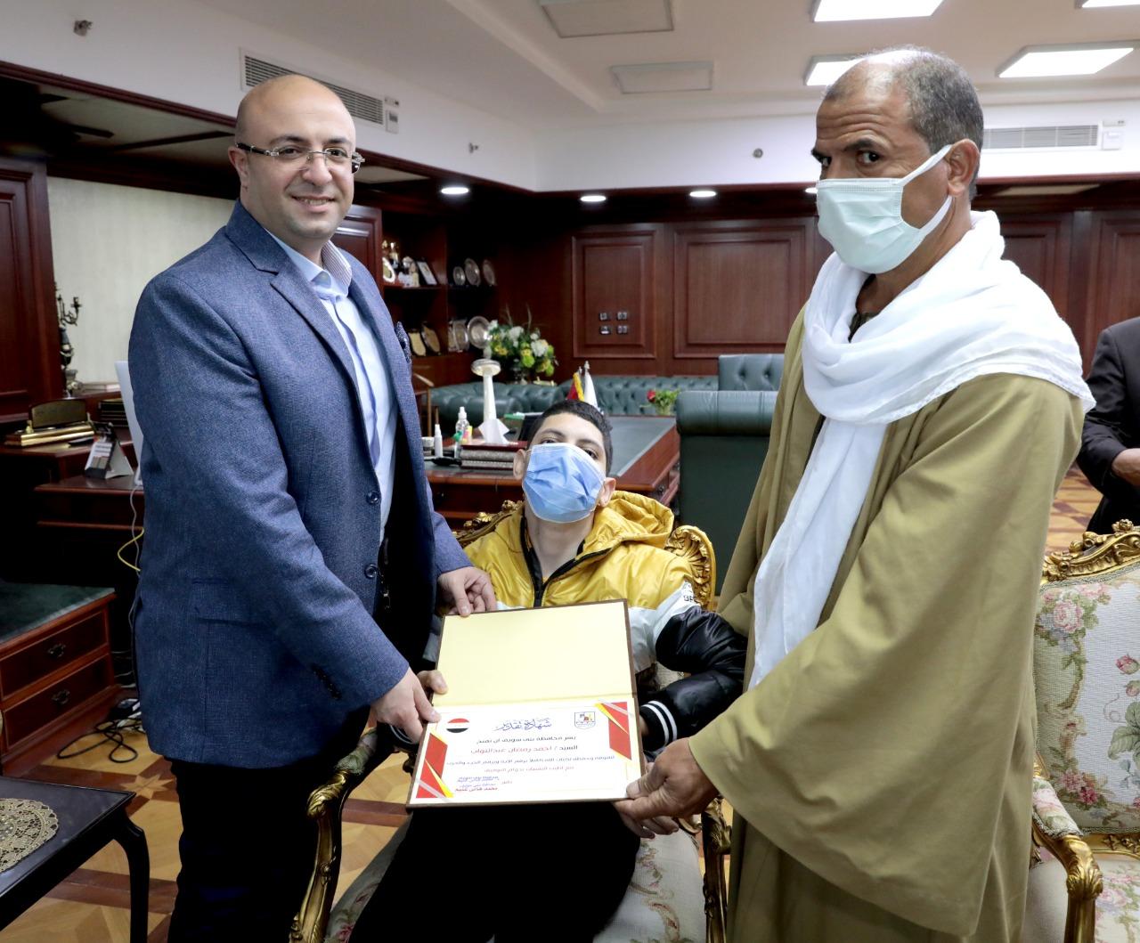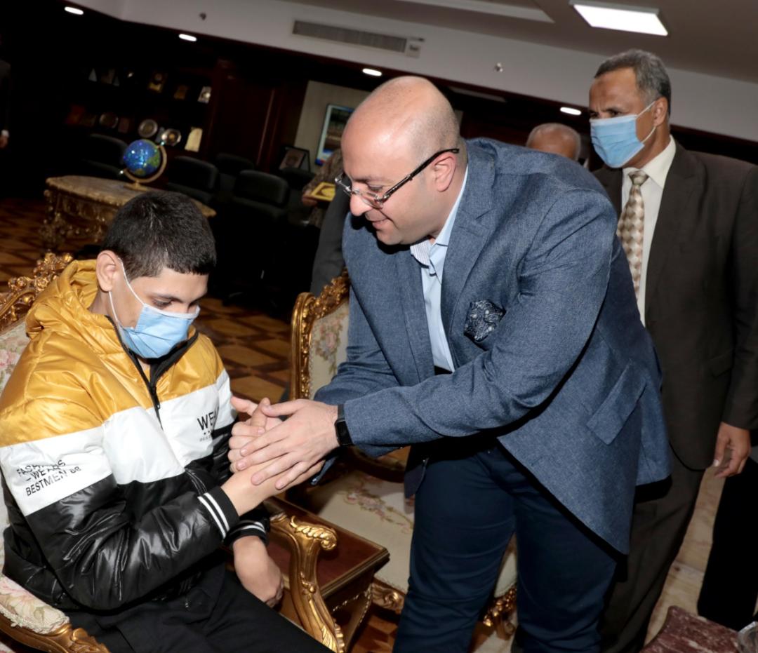كرم الدكتور محمد هاني غنيم محافظ بني سويف، اليوم الثلاثاء، الطفل المعجزة "أحمد رمضان عبد التواب" من ذوي الهمم، ابن قرية المنصورة مركز ناصر، لتميزه في حفظ القرآن الكريم بأرقام الآيات، حيث سلمه المحافظ شهادة تقدير ومكافأة مالية، تشجعيًا وتحفيزًا لتميزه في حفظ كتاب الله رغم إعاقته الذهنية والحركية.