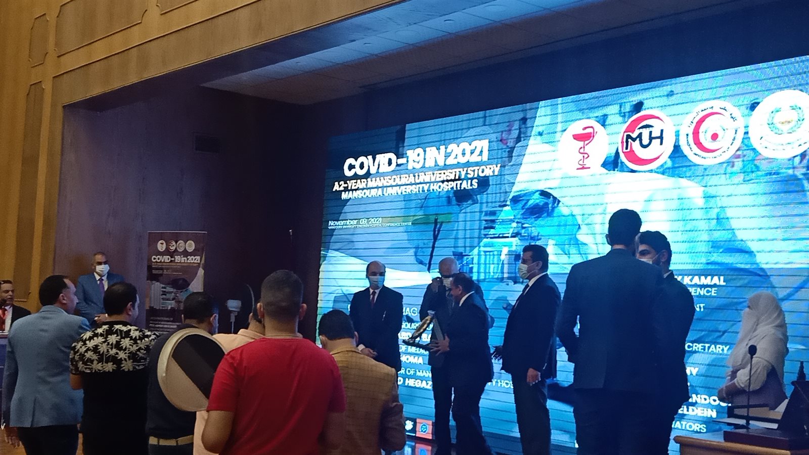 وحضر الدكتور الشعراوى كمال مدير مستشفى المنصورة الجامعى ورئيس المؤتمر، عدد من مديرى المستشفى السابقين،الدكتورة أمال رشاد والدكتور وائل زكريا - نواب رئيس المؤتمر، الدكتور خالد الطوخى سكرتير عام المؤتمر، مديرى مستشفيات جامعة المنصورة ومراكزها الطبية المتخصصة، السادة أعضاء اللجنتين العلمية والمنظمة للمؤتمر، ممثلين عن الأطقم الطبية بجامعة المنصورة التى قدمت ومازالت تقدم الخدمة الطبية للمصابين بفيروس كورونا المستجد.