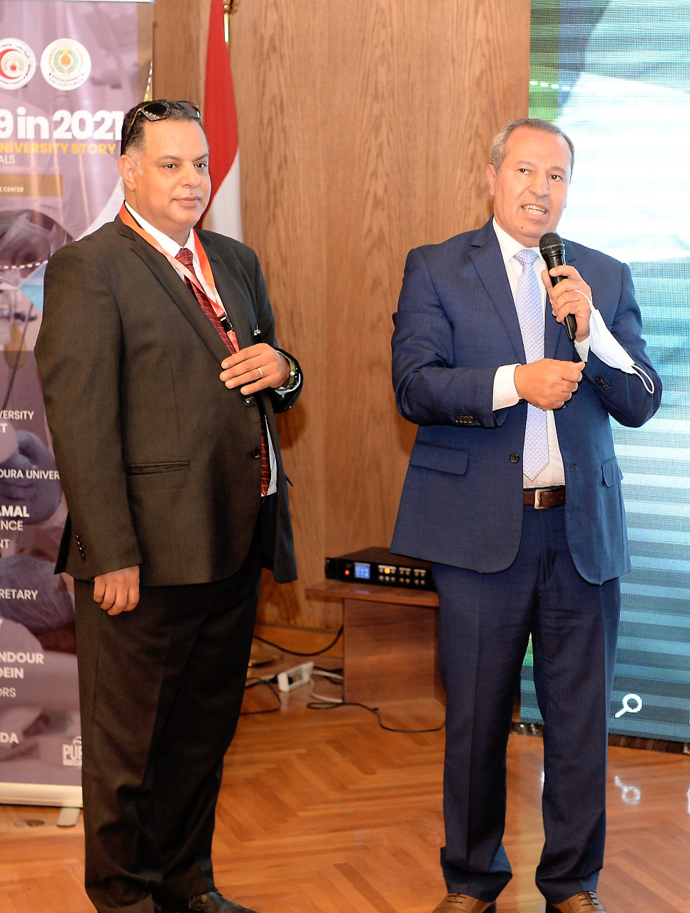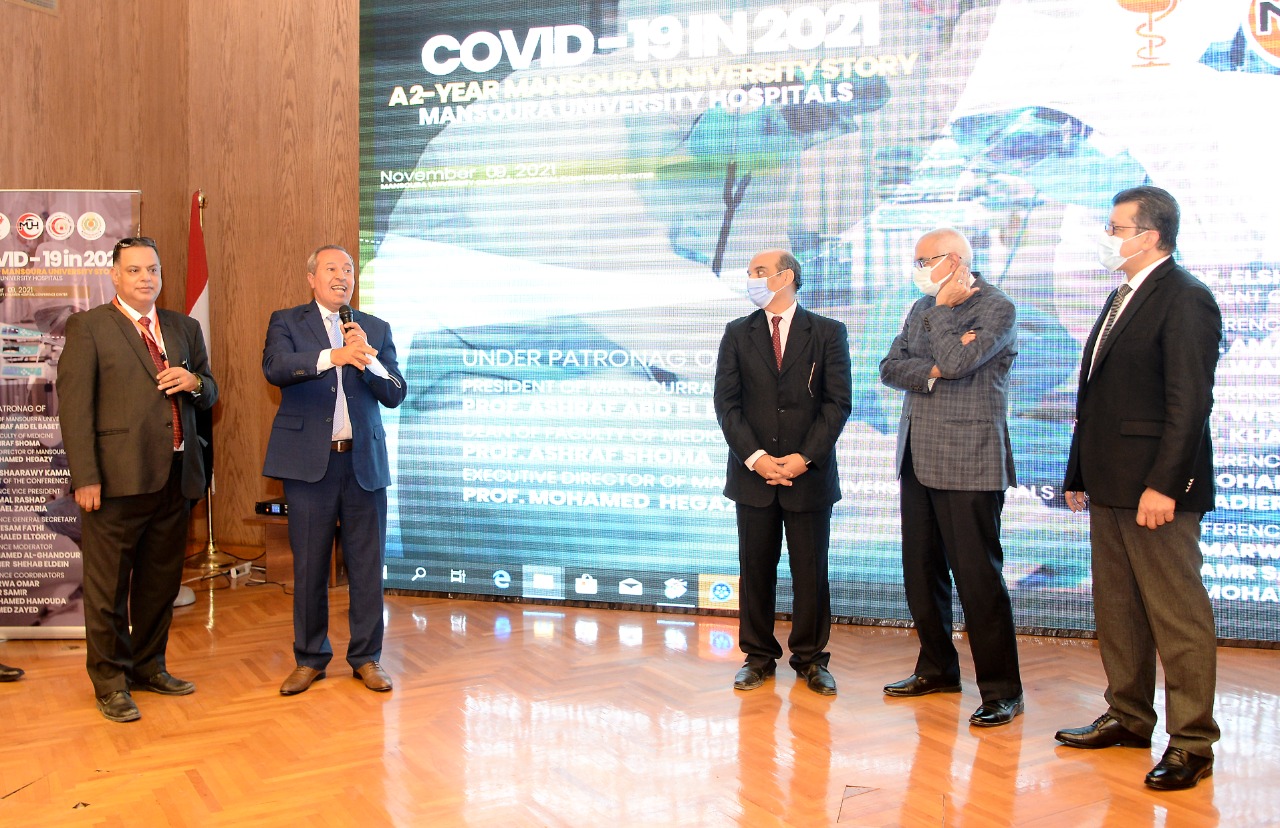 والدكتور محمد حجازي - المدير التنفيذي لمستشفيات جامعة المنصورة ومراكزها الطبية المتخصصة، الدكتور الشعراوي كمال - مدير مستشفى المنصورة الجامعى ورئيس المؤتمر وبحضور لفيف من مديرى مستشفيات جامعة المنصورة ومراكزها الطبية المتخصصة، وأعضاء اللجنتين العلمية والمنظمة للمؤتمر وممثلين عن الأطقم الطبية بجامعة المنصورة التى قدمت ومازالت تقدم الخدمة الطبية للمصابين بفيروس كورونا المستجد.