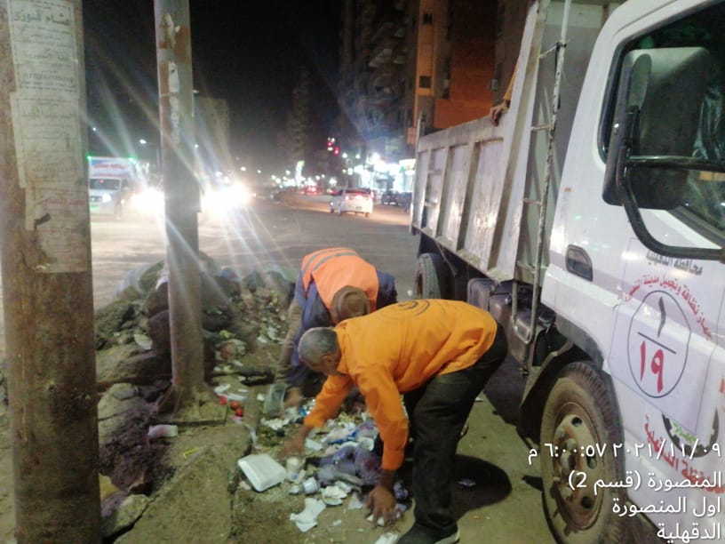 ليلا والناس نيام.. جهاز نظافة وتجميل المنصورة يرفع ١٥٠ طن قمامة| صور