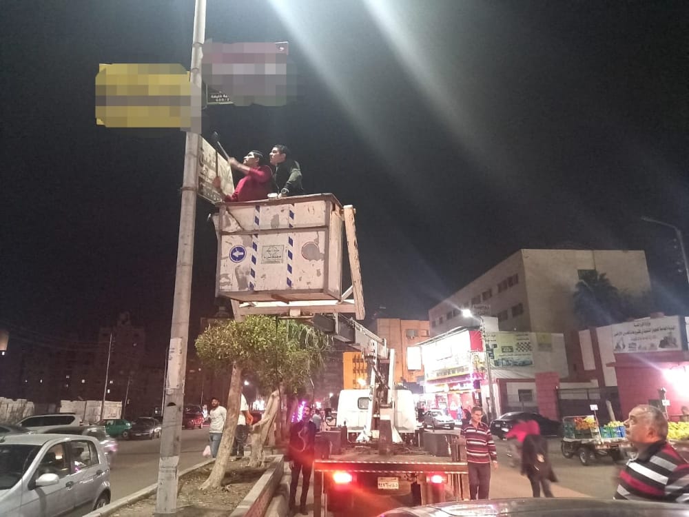كما تم إزالة عدد أخر من الإعلانات العشوائية وغير المرخصة على أعمده الإنارة بشارع عبدالسلام عارف وشارع الأتوبيس.