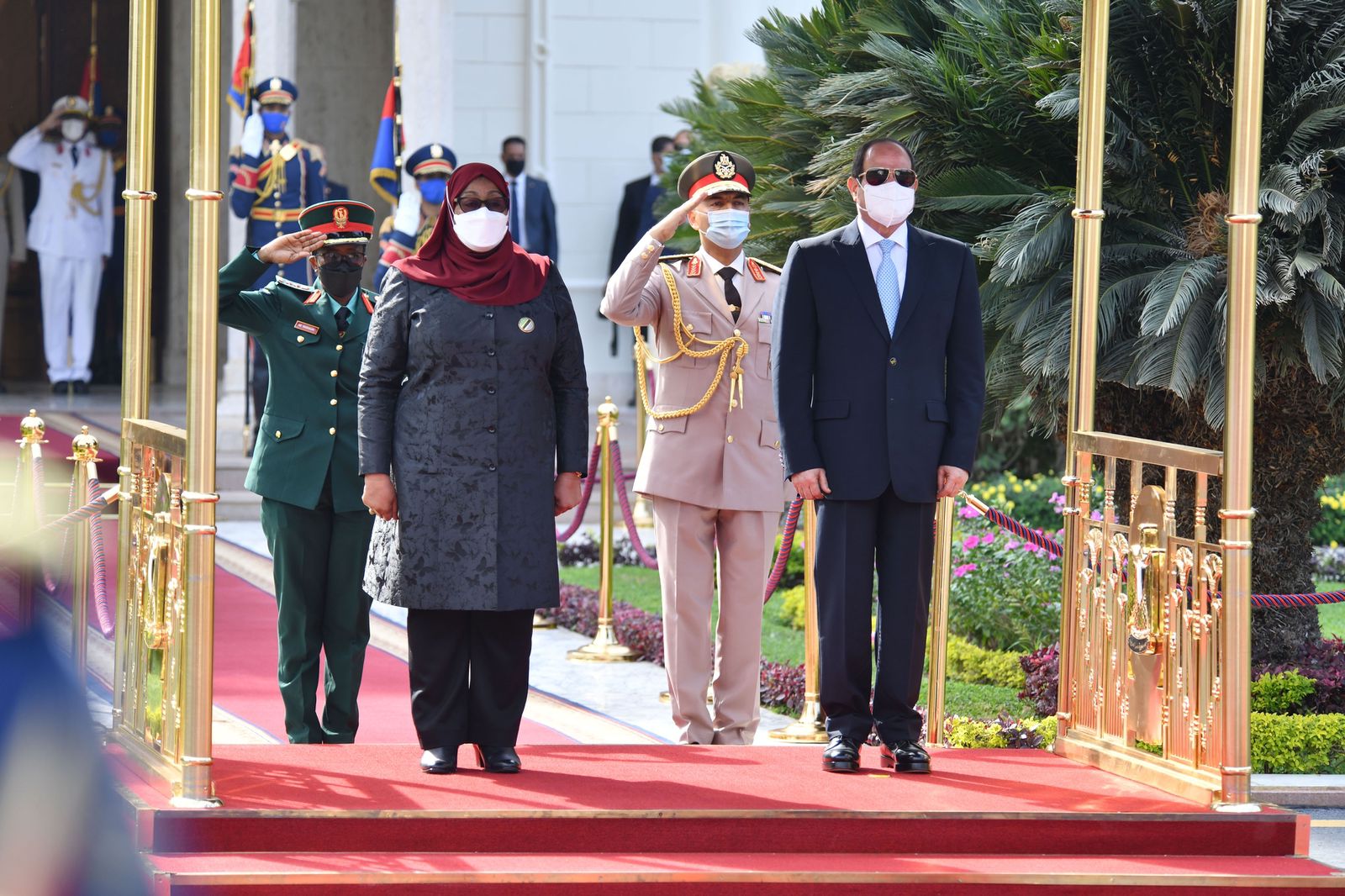 استقبل الرئيس عبد الفتاح السيسي اليوم بقصر الاتحادية الرئيسة سامية حسن، رئيسة جمهورية تنزانيا المتحدة، حيث أقيمت مراسم الاستقبال الرسمي وتم استعراض حرس الشرف وعزف السلامين الوطنيين.