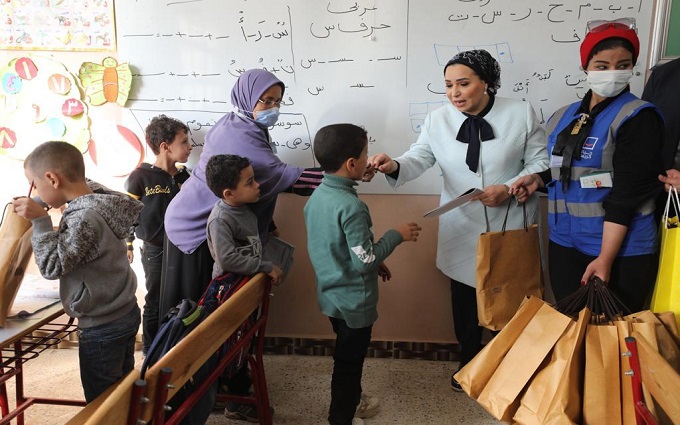 كما تفقدت مدرسة شما المختلطة وقامت بتوزيع الهدايا على الأطفال المتواجدين واستمعت لشرح من القائمين عليها.