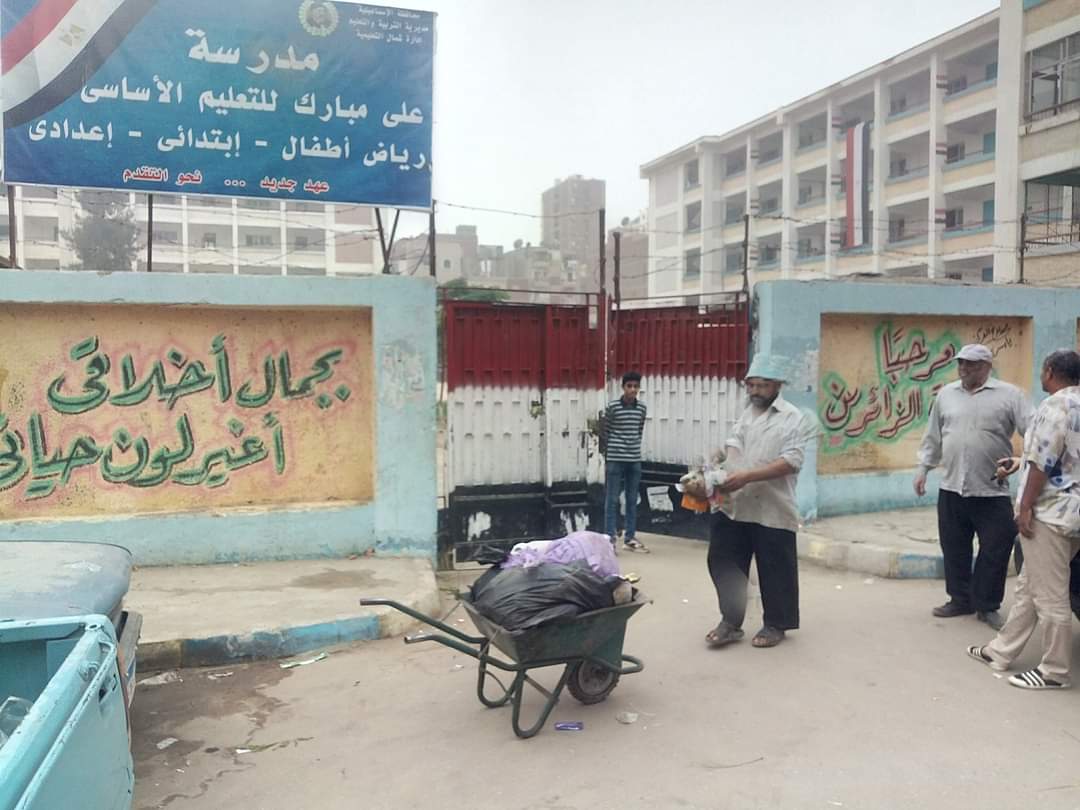 رئيس حي ثان الإسماعيلية يستجيب لطلب إحدى المدارس لإزالة القمامة| صور