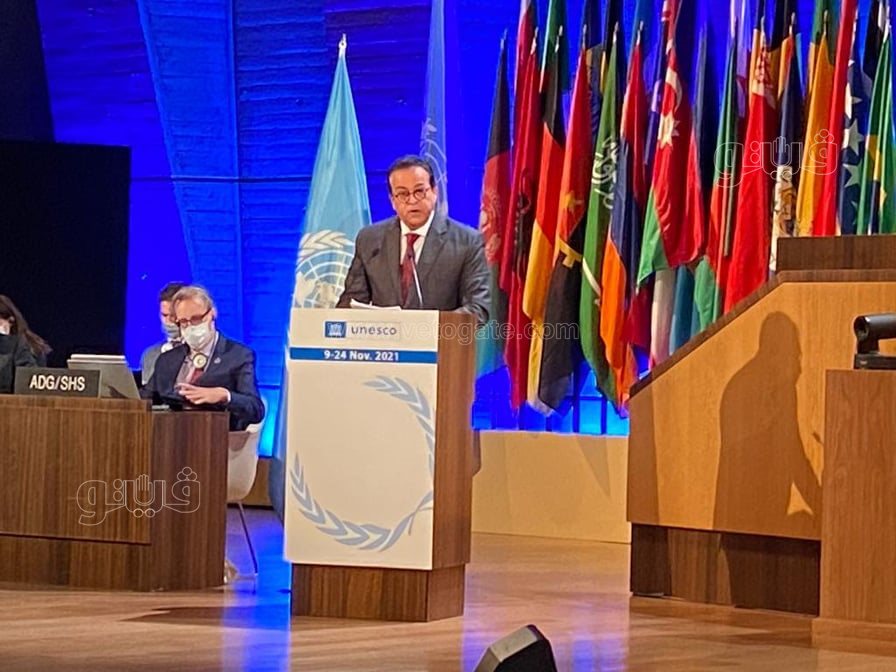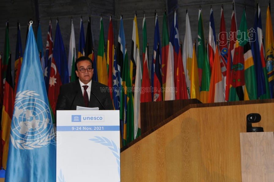 واشار الى استمرار الالتزام المصري بالمنظمة ومقاصدها، وقال: هو الالتزام الذي دفعنا إلى التَرَشُح لعضوية المجلس التنفيذي للمنظمة عن الفترة من 2021 إلى 2025 وإذ نتطلع إلى الحصول على دعمكم لاكتساب هذه العضوية، فإننا نؤكد أننا سوف نوظفها لصالح تحقيق التوافق، وطرح ودعم مبادرات للمنظمة في مجالات عملها بما يُفَعّل من دورها في شتى أرجاء العالم، ولاسيما الدول النامية... ويمكنني أن أذكر لكم، على سبيل المثال وليس الحصر: تعميم تجربة مصر الرائدة في مجال إصلاح منظومة التعليم من خلال المكاتب الميدانية المختلفة للمنظمة، والعمل على ضمان التطبيق الناجح للتوصيتين المطروحتين على جدول أعمال دورتنا الحالية، والمتعلقتين بأخلاقيات الذكاء الاصطناعي والعلم المفتوح، والتى شاركت مصر في صياغتهما بفاعلية، وتعزيز حماية التراث الوثائقي في ضوء تمكن مجموعة العمل المعنية بإصلاح برنامج ذاكرة العالم – التي تشرفت مصر بالمشاركة النشطة بها- من التوصل إلى تسوية تُمَكِّن من استئناف كافة أنشطة البرنامج... وذلك فضلًا عن استضافتنا لعددٍ من الفعاليات الدولية الهامة بالتعاون مع اليونسكو، أبرزها مؤتمر اطلاق عِقد المحيطات الدولى فى القارة الأفريقية خلال شهر ديسمبر المقبل.