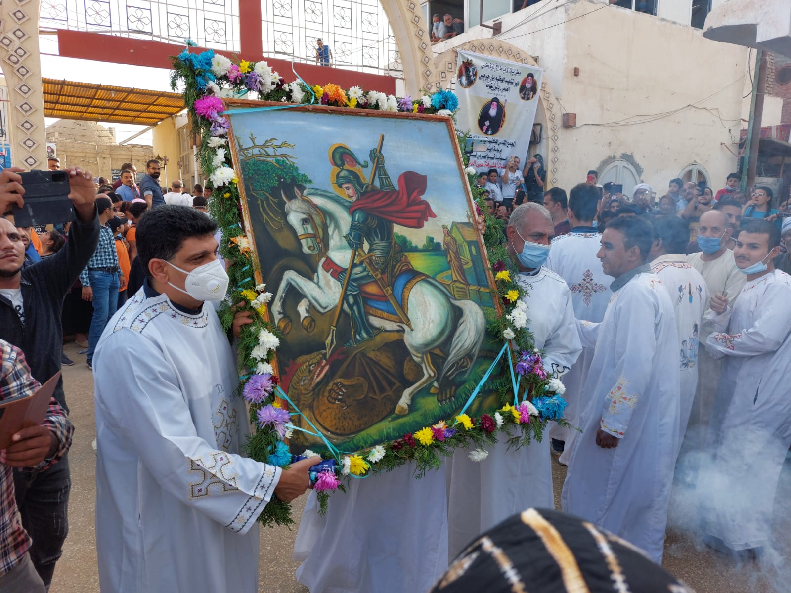 وبدأت الاحتفالات والتى تستمر لمدة سبعة أيام من 10 نوفمبر وحتي 16 نوفمبر 2021، بحمل أيقونة كبيرة للشهيد العظيم مارجرجس الروماني، وأمامهم الشمامسة بالملابس البيضاء وتعلو أصواتهم بالتسابيح، وخلفهم الاباء الاساقفة والكهنة والرهبان.
