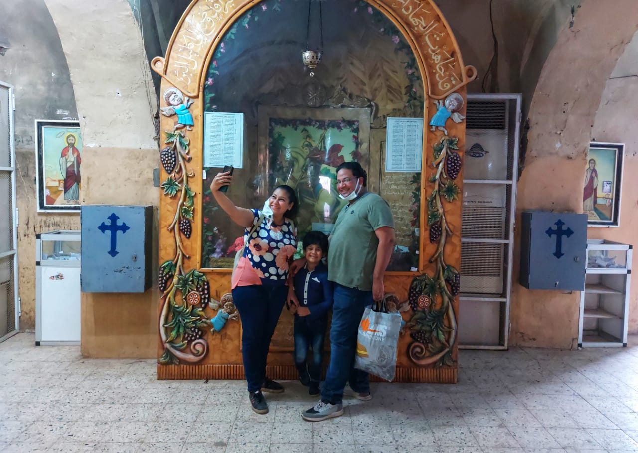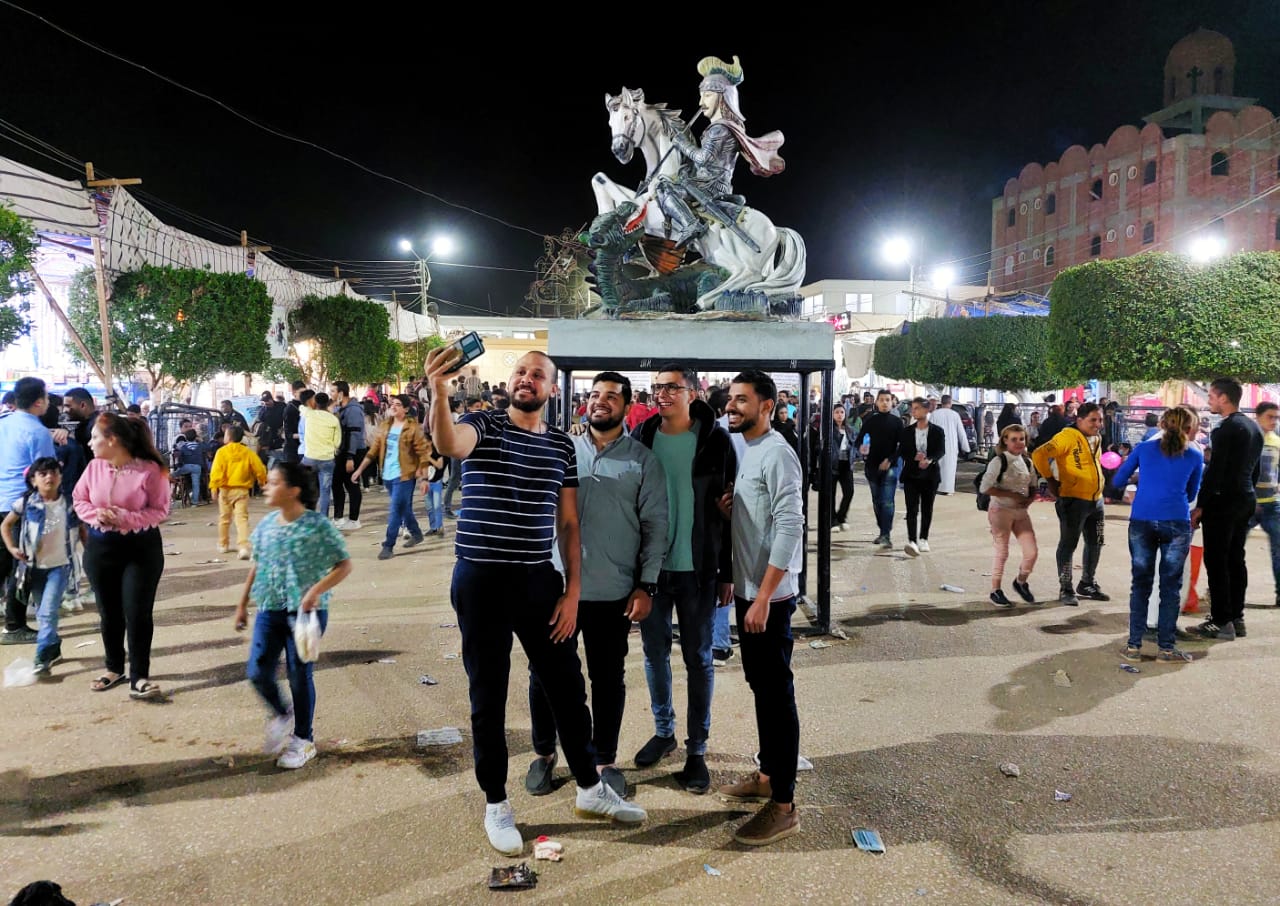 حرص العديد من الأقباط على التقاط الصور التذكارية خلال زيارتهم دير مارجرجس بـجبل الرزيقات التابع لمحافظة الأقصر، للمشاركة فى الاحتفال السنوى للدير، بذكرى تكريس أول كنيسة باسم الشهيد مارجرجس بمدينة "اللد" فى فلسطين.