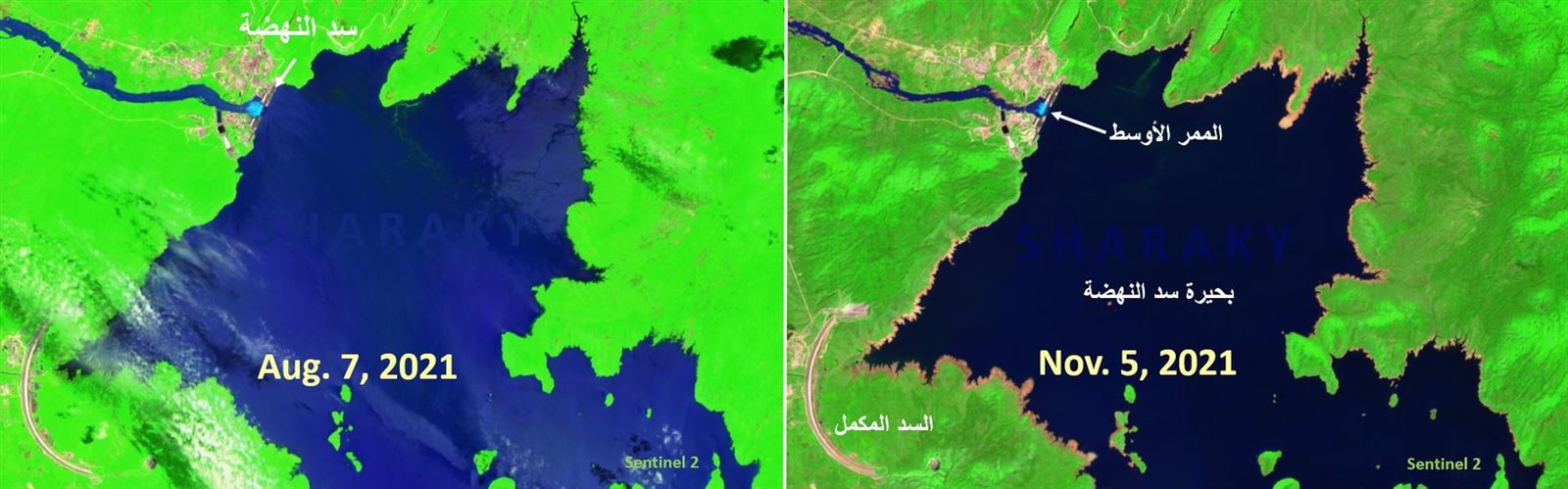 وأضاف: "كان من الممكن الاستفادة منها فى توليد كهرباء، إلا أنه بعد انتهاء موسم الفيضان بنهاية شهر أكتوبر تم عبور الـ2 مليار م3 المؤقتة دون استفادة، وما زلت جميع البوابات مغلقة كما هو واضح من صور الأقمار الصناعية (Sentinel 2) التى تظهر تراجع حواف البحيرة "اللون الفاتح".