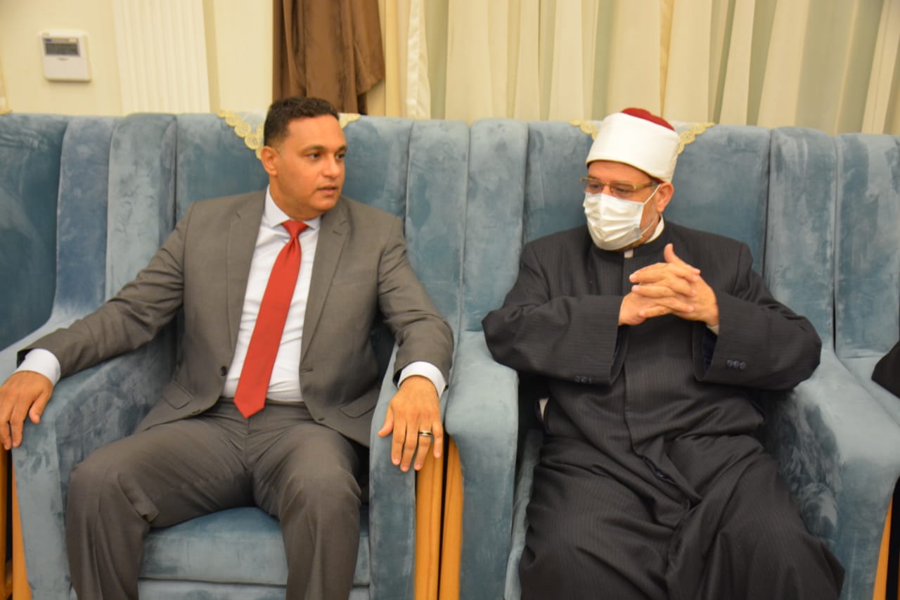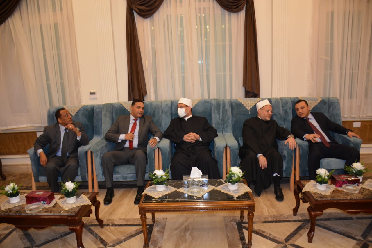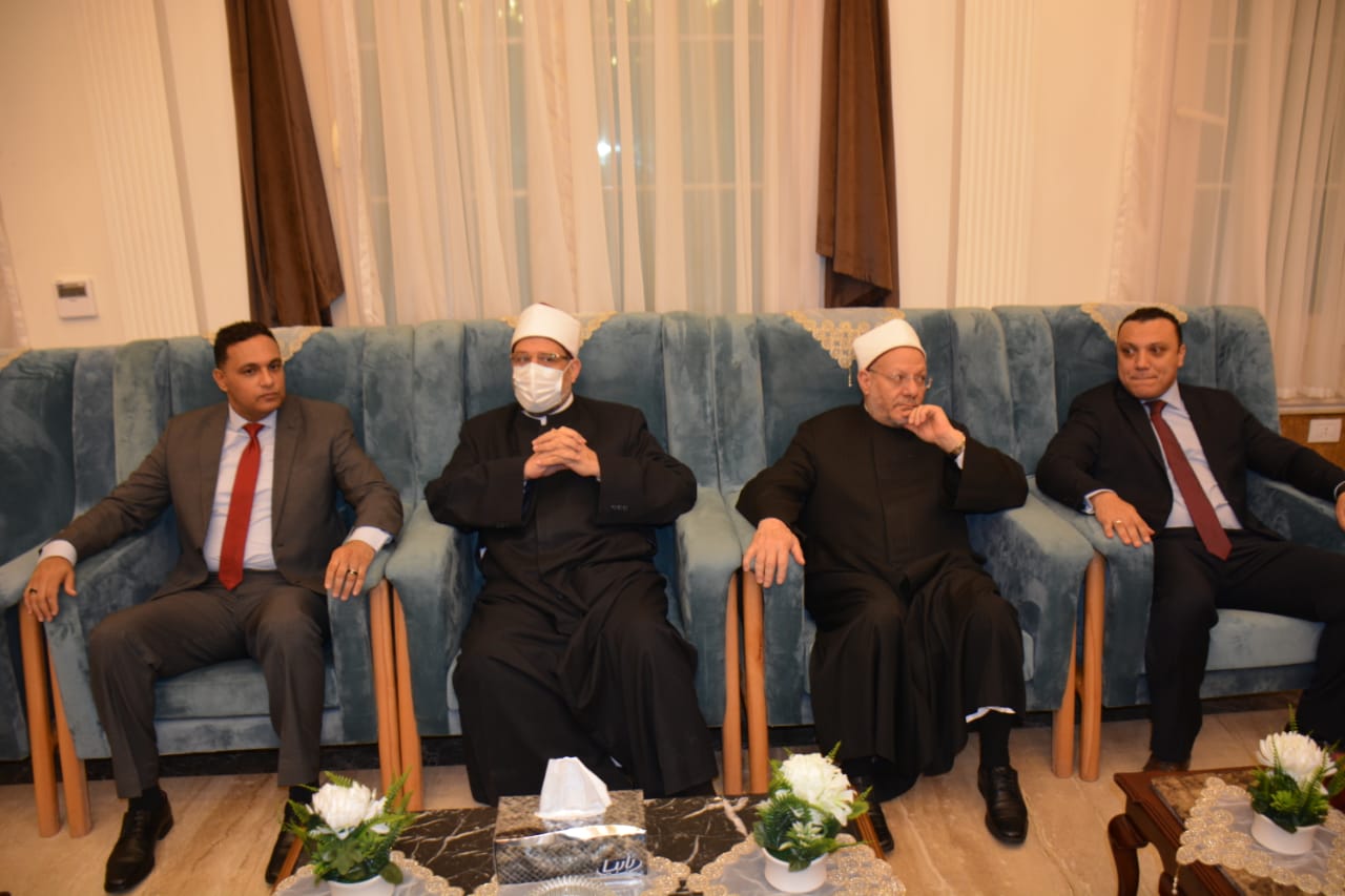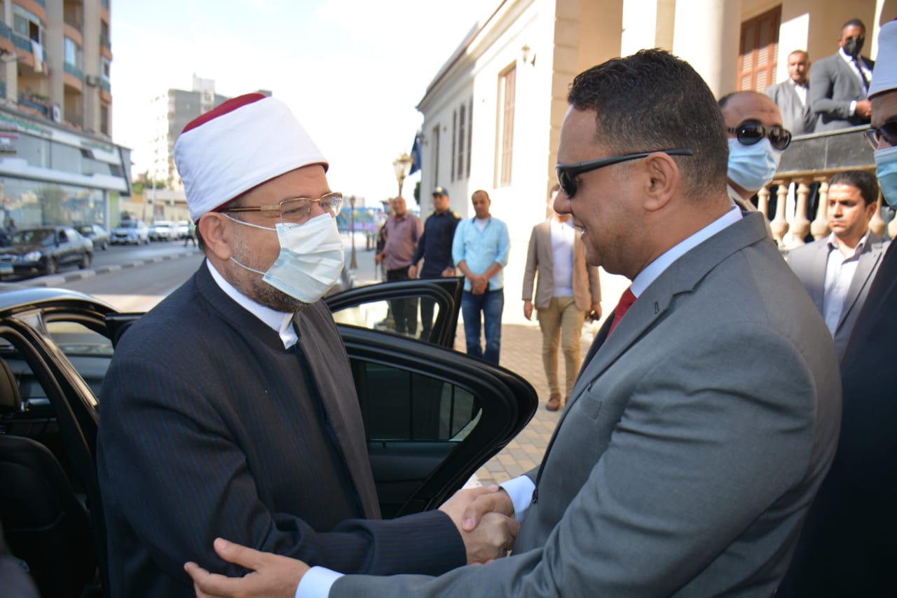 وكان في استقبال المفتي ووزير الأوقاف الدكتور أيمن مختار محافظ الدقهلية والدكتور هيثم الشيخ نائب محافظ الدقهلية والشيخ صفوت نظير المرسي وكيل وزارة الأوقاف والمستشار عبد الحميد همام ولفيف من القيادات التنفيذية.