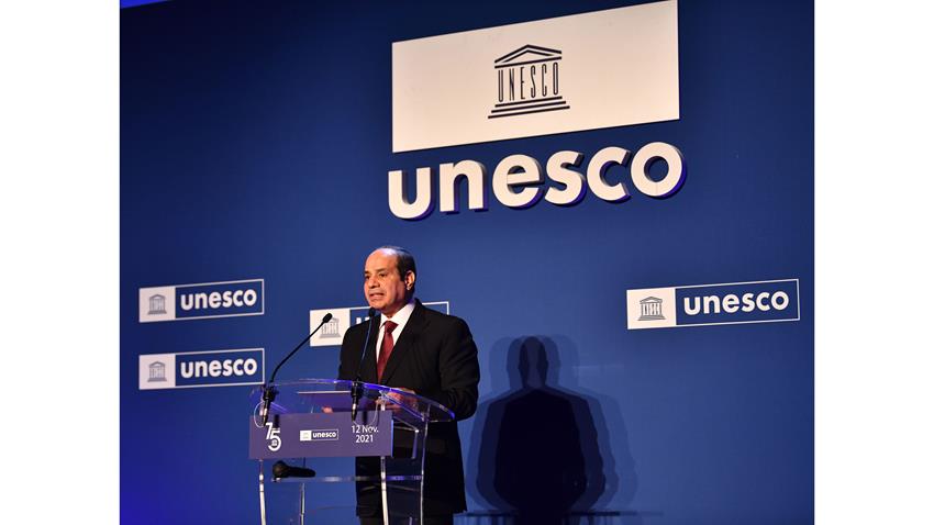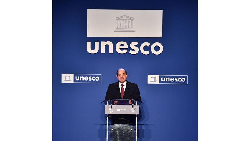 مجددًا أتوجه بالتهنئة إلى منظمة اليونسكو بمناسبة الاحتفال بمرور خمسة وسبعين عامًا على تأسيسها، متطلعًا إلى تعزيز علاقات التعاون المثمر معها، وذلك امتدادًا للشراكة الطويلة بين مصر والمنظمة على مدى عقود، والتي نتطلع إلى مزيد من تطويرها وتعميقها، تنفيذًا لأهداف المنظمة النبيلة في خدمة الثقافة والعلوم والحضارة الإنسانية.