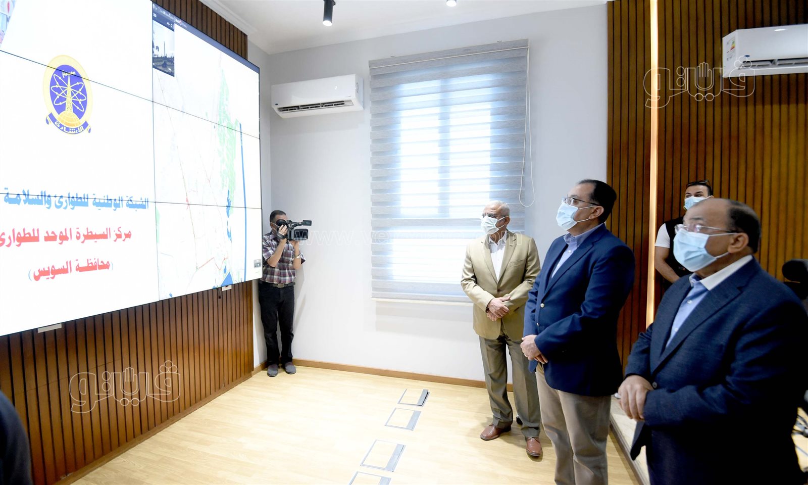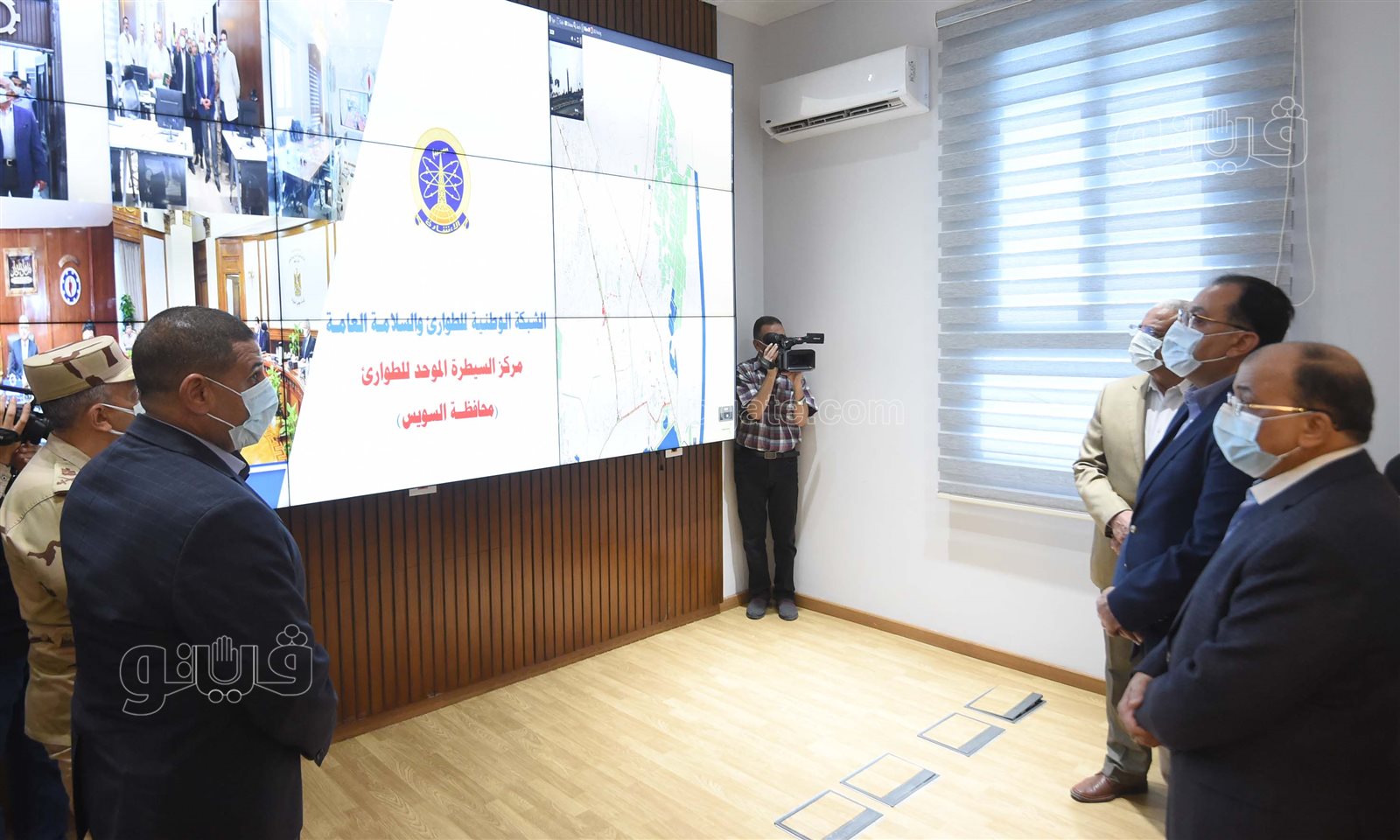 وعقب ذلك، توجه رئيس الوزراء ومرافقوه لتفقد وحدة الطوارئ والسلامة العامة المتطورة بالمبنى القديم لديوان عام المحافظة، التي تم تنفيذها بمحافظة السويس ضمن محافظات القناة، التي تم إدراجها ضمن المرحلة الأولى لتنفيذ مشروع الشبكة الوطنية الموحدة للطوارئ والسلامة العامة المتطورة.