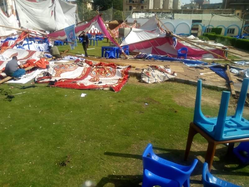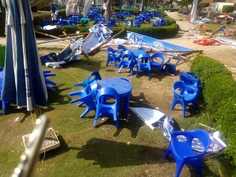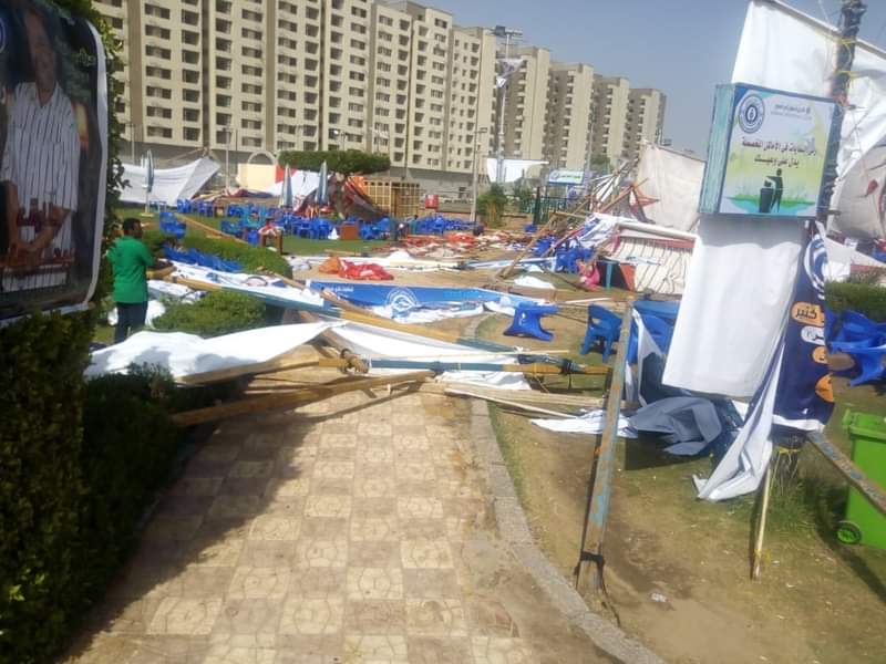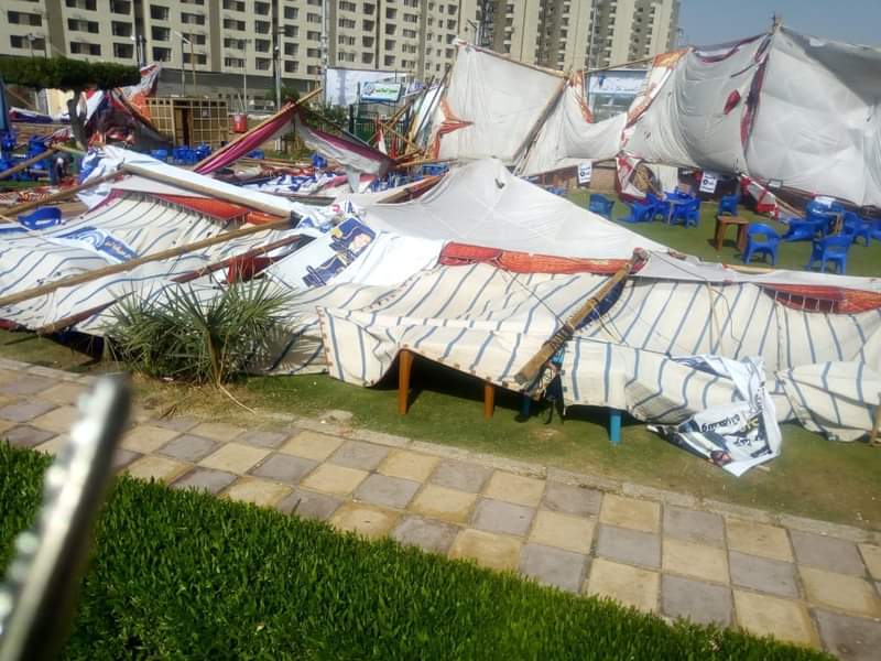 شاهد.. الأمطار الرعدية والرياح تحطم الخيام الانتخابية بنادي أسوان