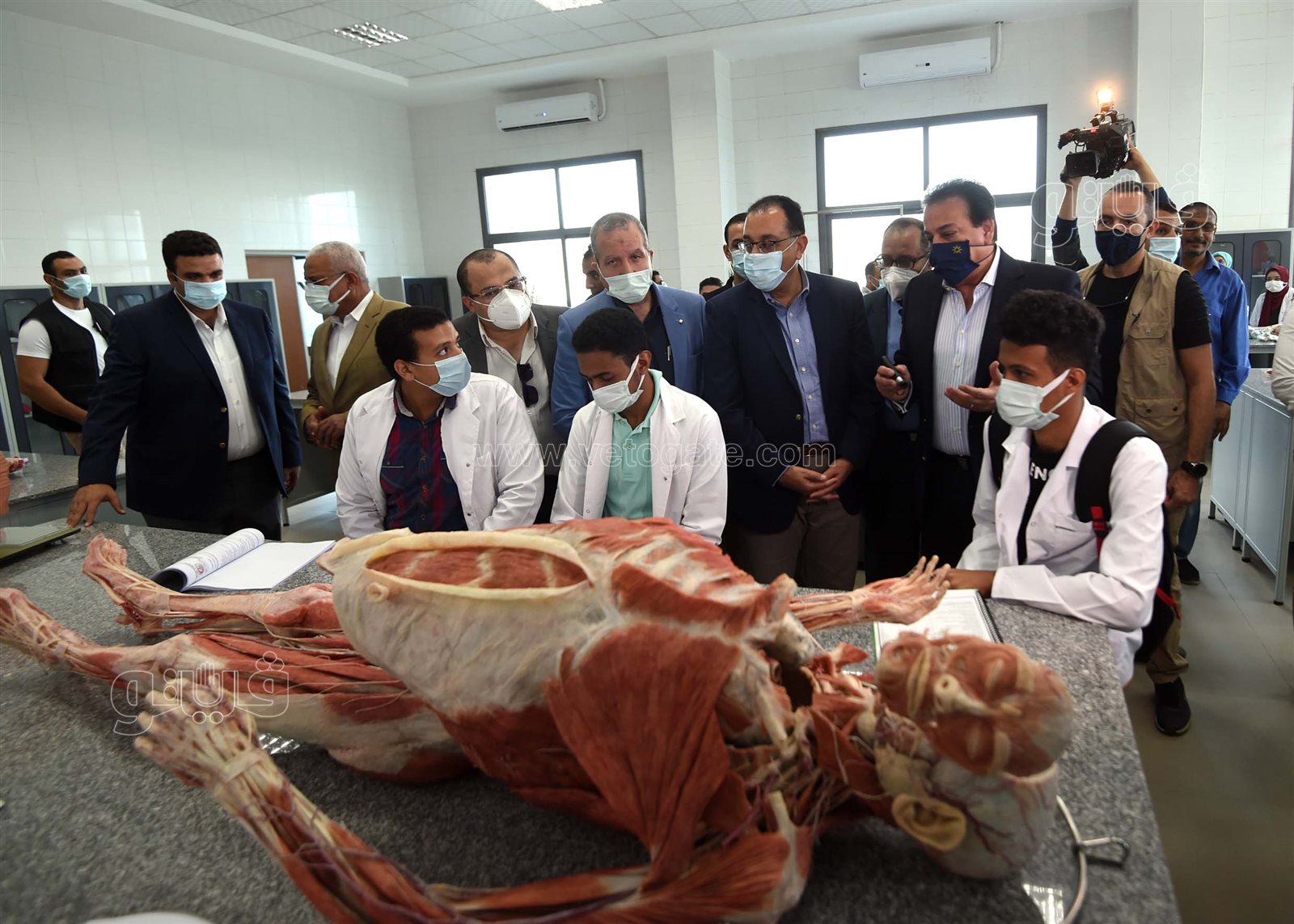 وأشار الوزير إلى أن الكلية تضم أقسام ومعامل الهستولوجي والفسيولوجي والباثولوجي، وطب المجتمع والتعليم الطبي، وقاعات التدريس، كما تضم أقسام الميكروبيولوجي والطفيليات والفار ماكولوجي والكيمياء الحيوية والطب الشرعي والسموم، إلى جانب معمل المهارات الإكلينيكية، وقسم الباطنة العامة والخاصة وقسم الأطفال وطب الأسرة، فضلا عن أقسام الجراحة العامة والجراحات الخاصة، وقسم النساء والتوليد، ووحدة الجودة، إلى جانب مكتبة إلكترونية، ومعامل حاسب آلي، ومشرحة لقسم التشريح.
